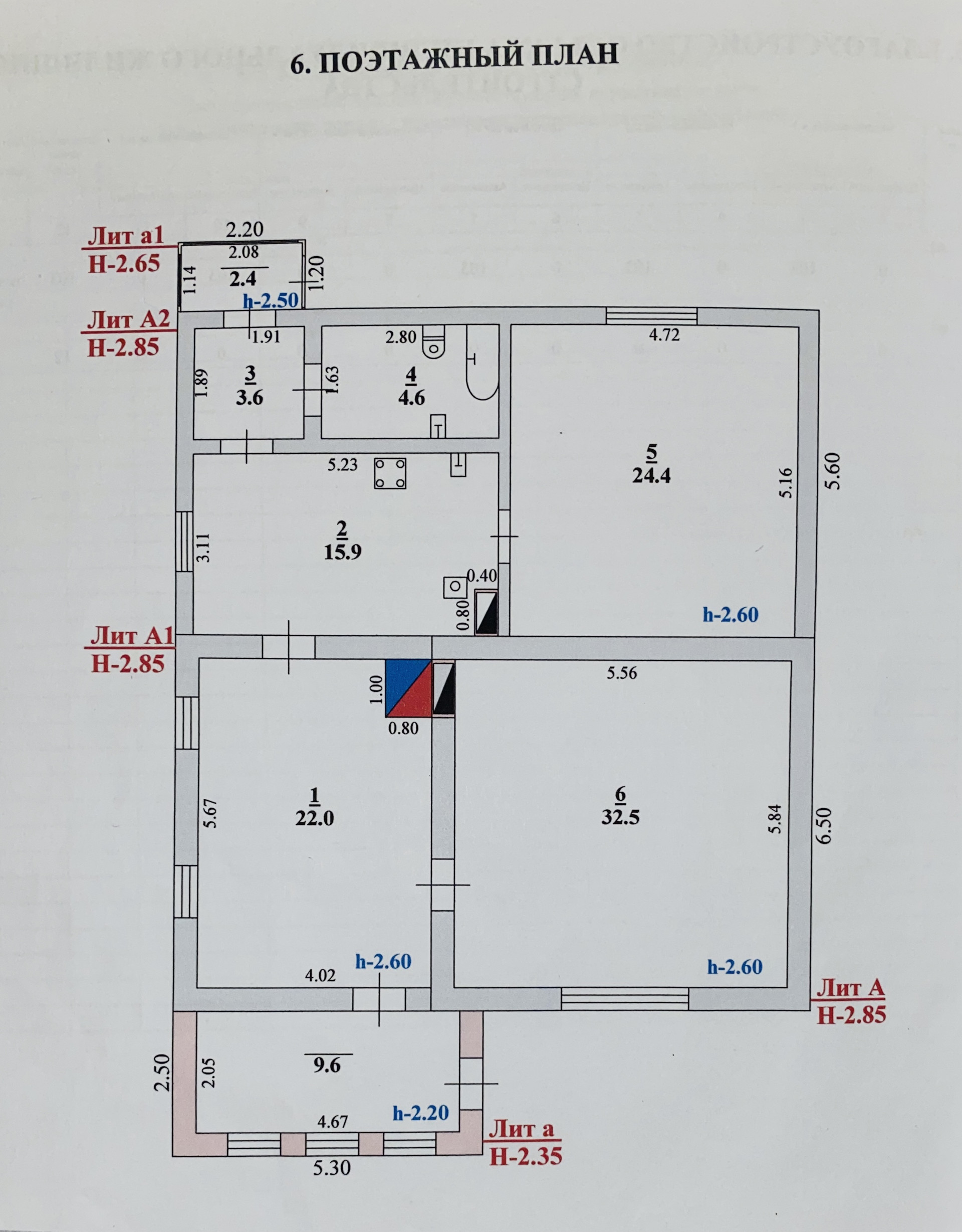 (а1) тамбур с выходом во двор 2.4 кв.м.;
