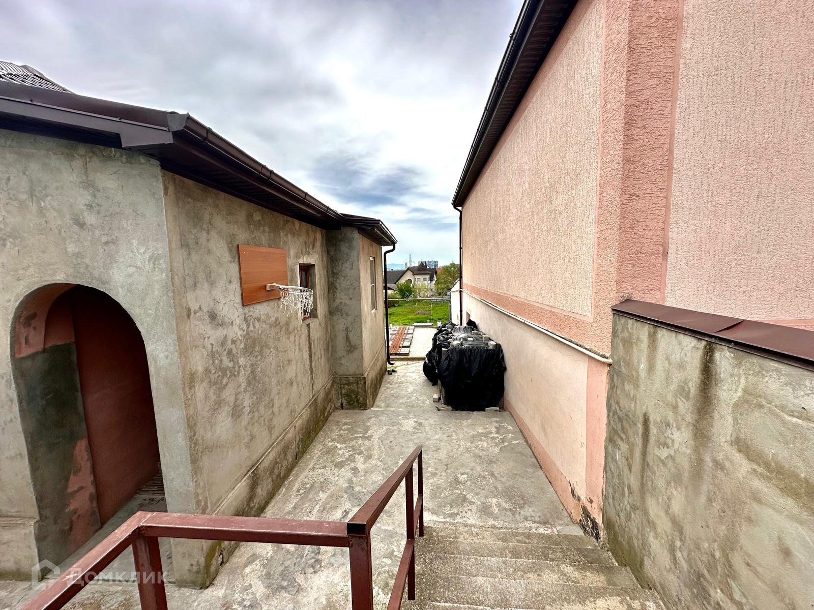 На территории участка за домом уже выложен фундамент, где можно построить летную кухню или беседку с зоной барбекю.