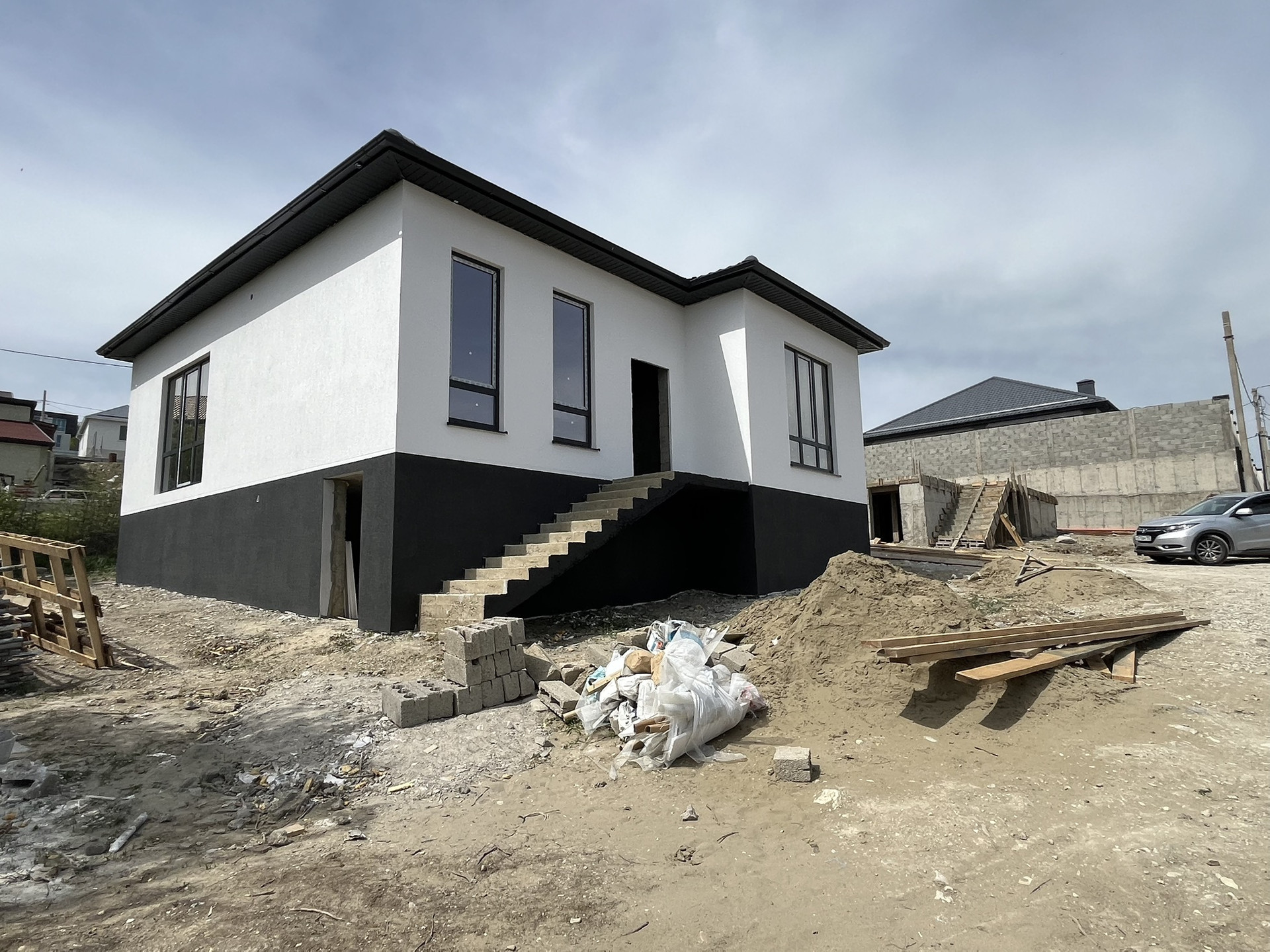 Предчистовая отделка,монолитное перекрытие 15см,стяжка пола,коллекторы теплых полов,скважина,септик.
