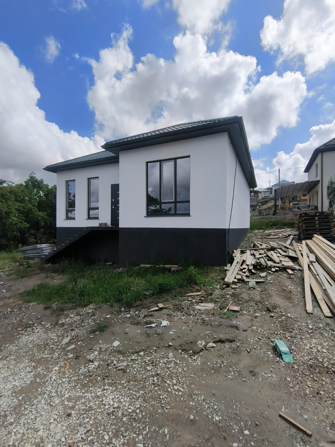 Дом продается в предчистовой отделке: разводка электрики и сантехники, стяжка пола, штукатурка стен под обои, теплый пол.