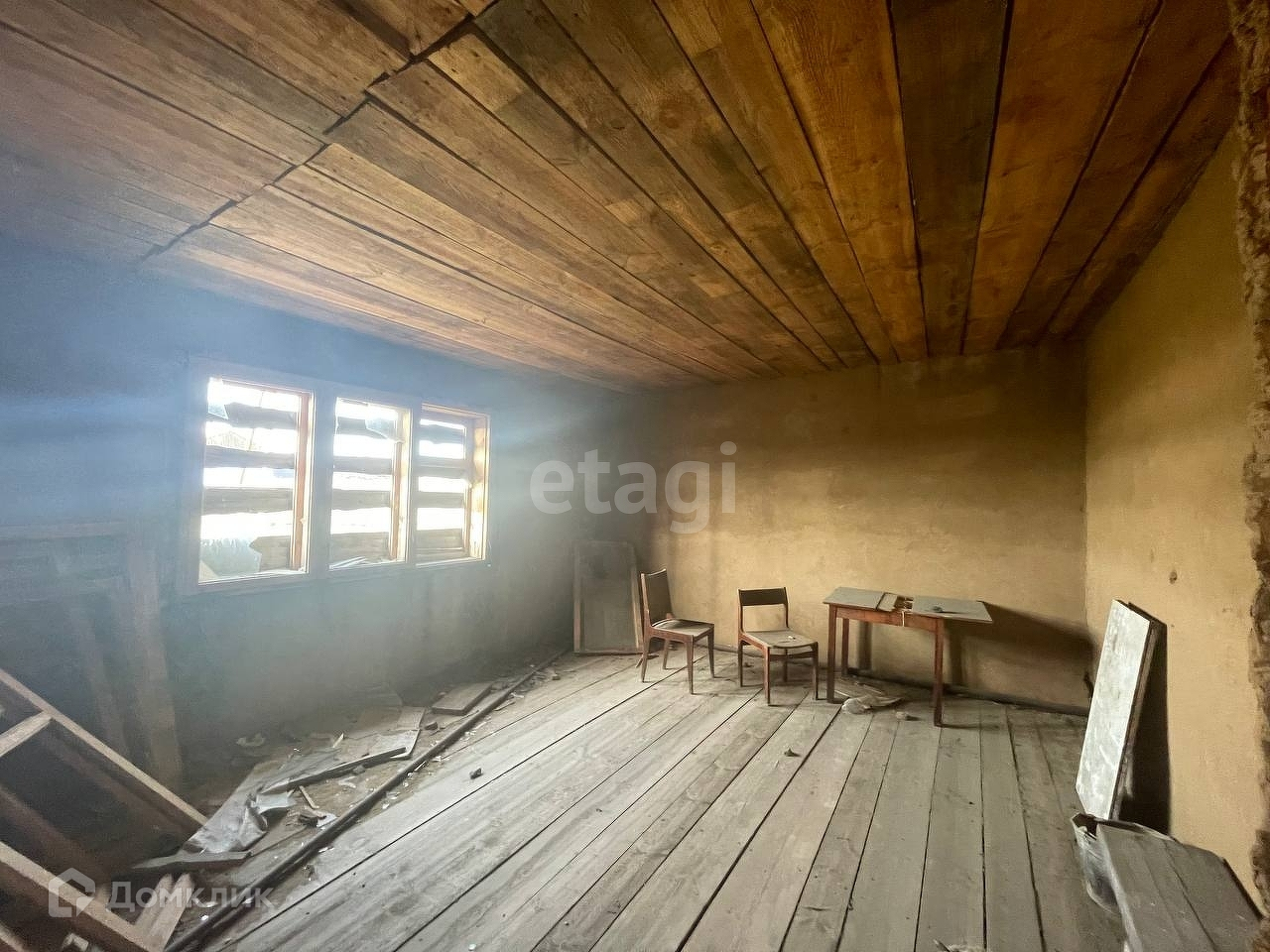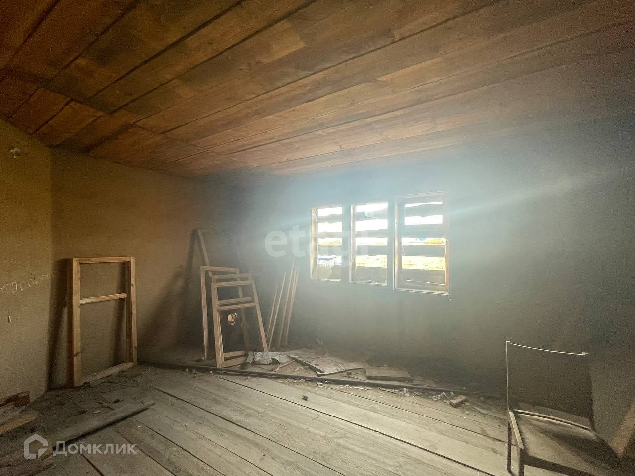 Дом отдельностоящий, деревянный. Недостроенный. Крыша шиферная, перекрытия деревянные. Пол дощатый. В четырех комнатах оштукатурены стены, положен пол. Где предполагалась кухня и санузел, нет перегородок и пола. Рядом с домом проходит газовая труба, село полностью газифицировано. Вода и электричество также не подведены, но все рядом. Участок не огорожен и не разработан. Дому нужен хозяин, который его достроит на свой вкус и вдохнет в него жизнь!