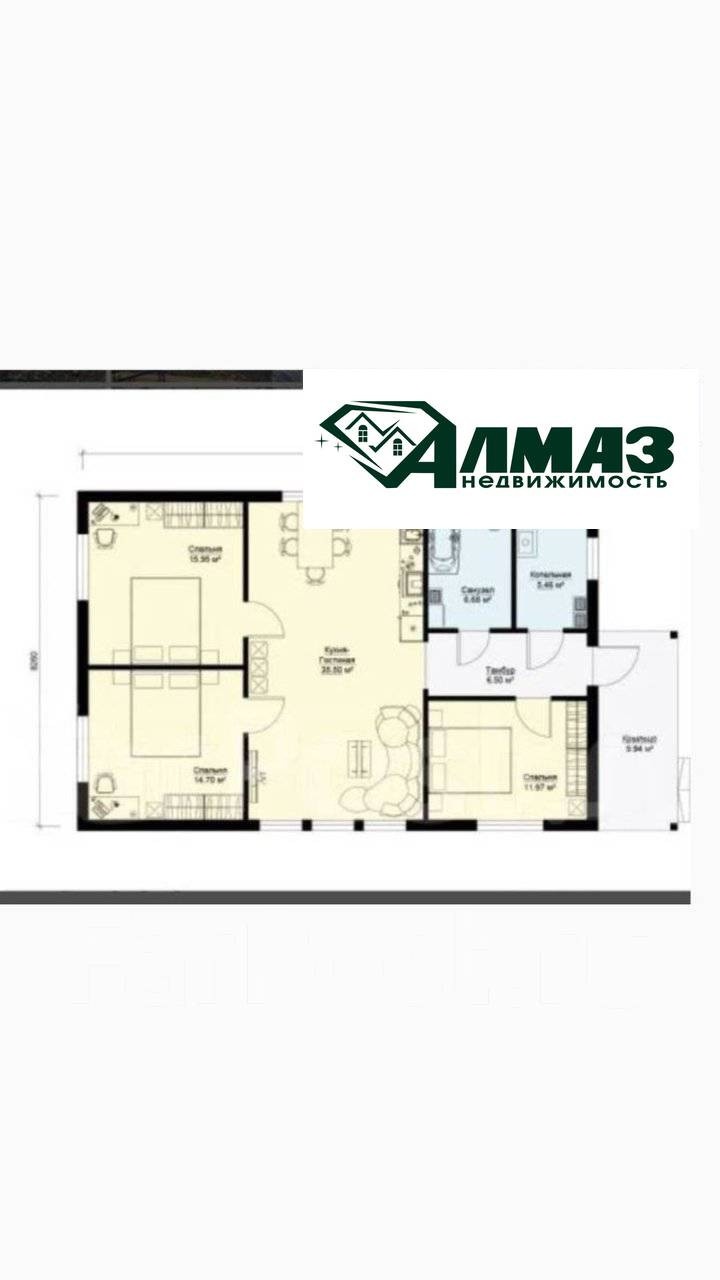 1-этажный дом, 94 м2, на продажу в селе Борисовка