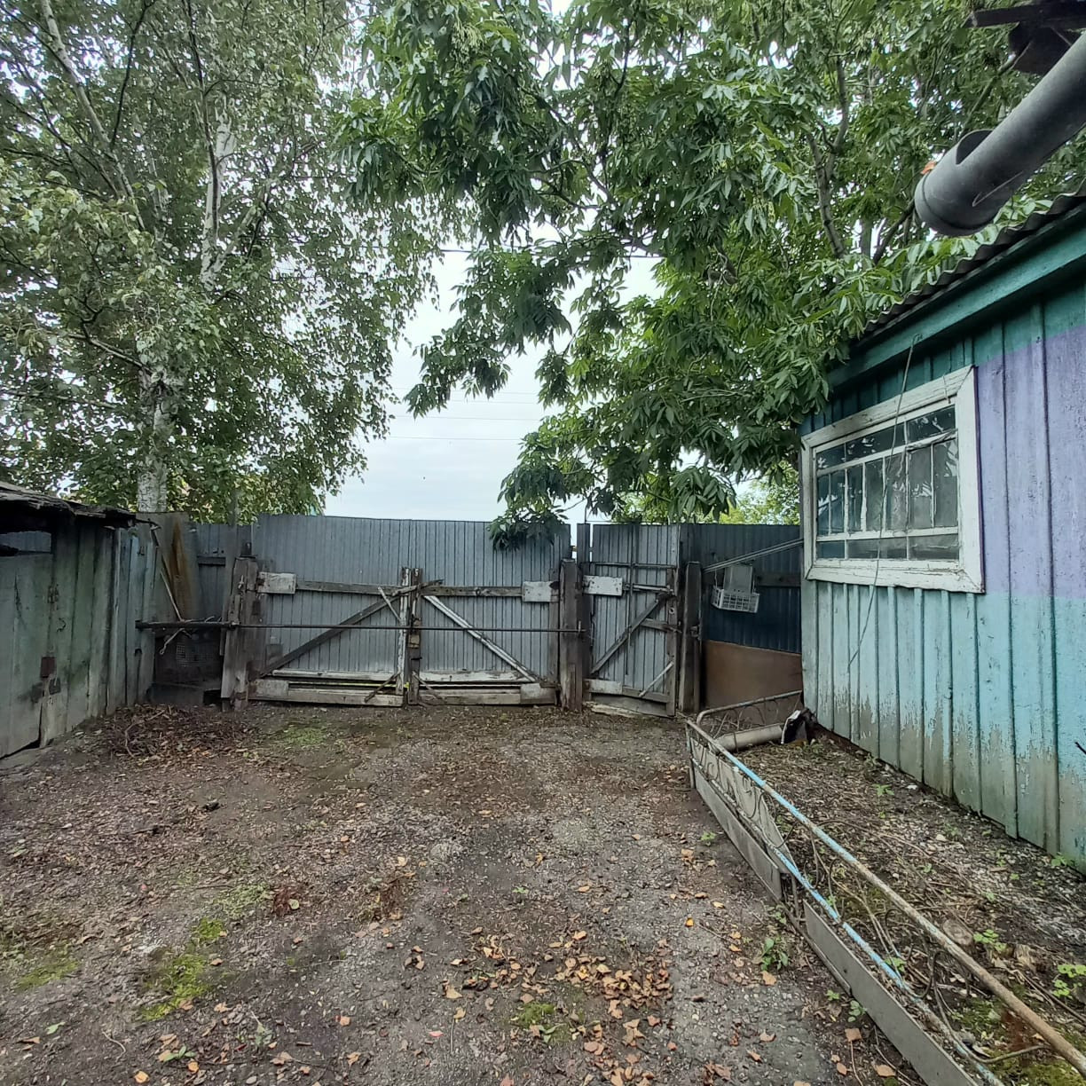 От дороги металлический забор, ворота