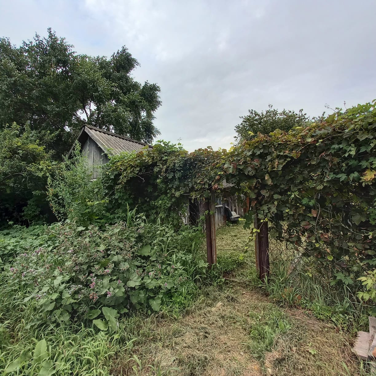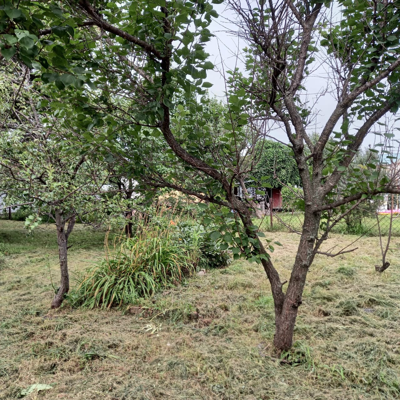 В саду виноград, смородина, абрикосы, яблоня, сливы