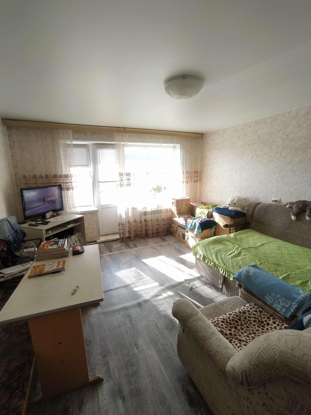 Квартира в хорошем жилом состоянии- заменена эл. проводка, натяжные потолки, пластиковые окна, постелен линолеум, стены выровнены, железная дверь.
