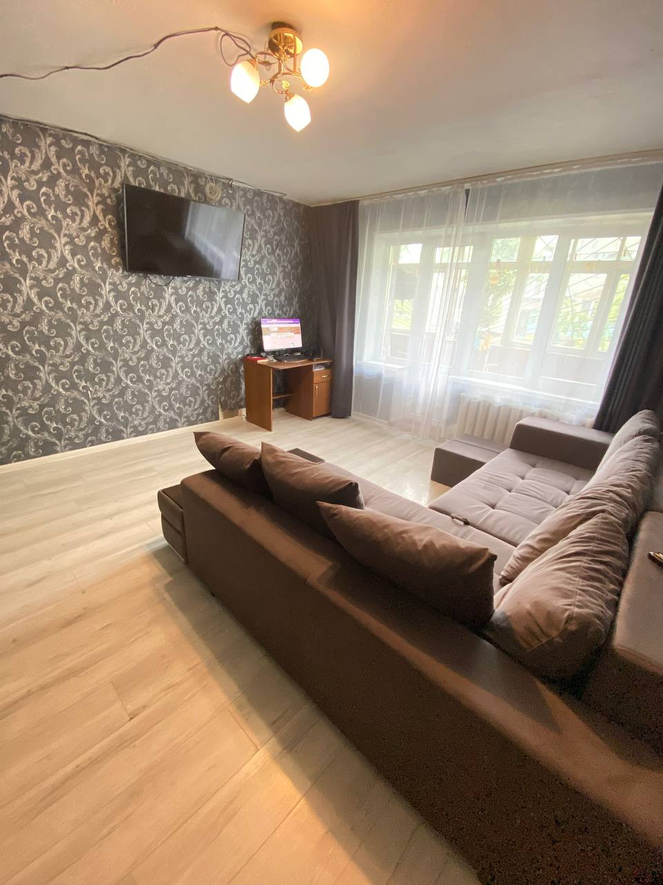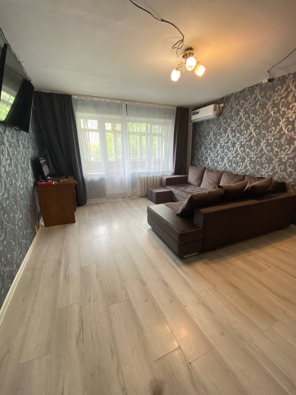 Сама квартира с косметическим ремонтом, который продолжаем делать по сей день. Пластиковые окна, заменена проводка, ламинат, частично теплый пол, натяжные потолки. Лоджия застеклена деревянными рамами, и перекрыта решеткой.