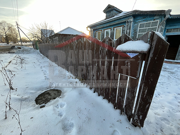 По фасаду дома сделан деревянный забор. С двух сторон по границе -рабица.