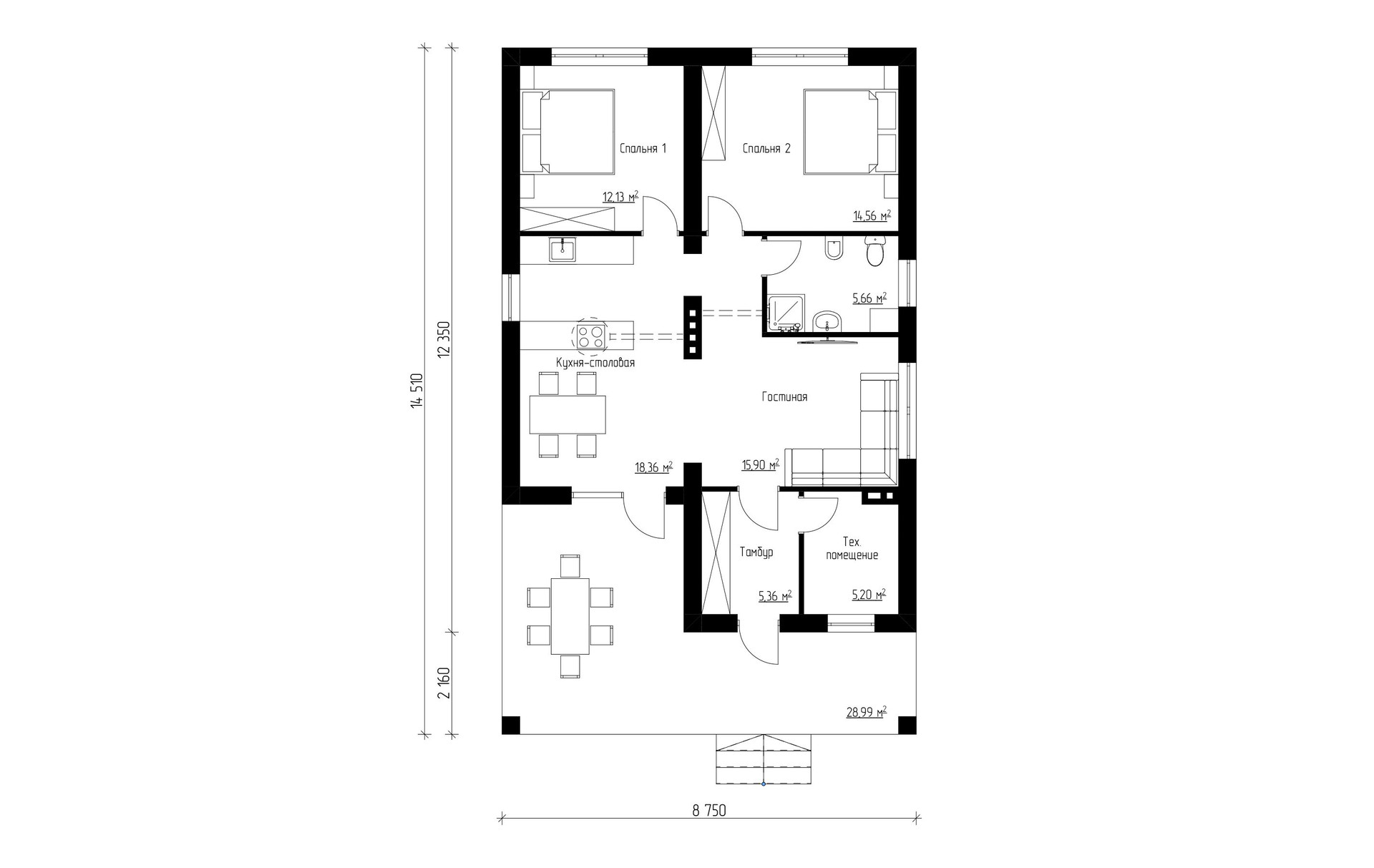 Площадь дома 106 м2.