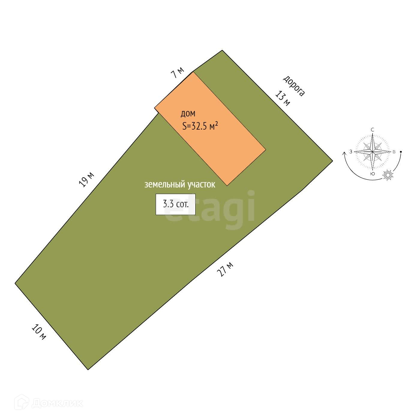 Участок 3,5 сотки, что позволяет завести небольшое е объ хозяйство, так же есть место для небольшого