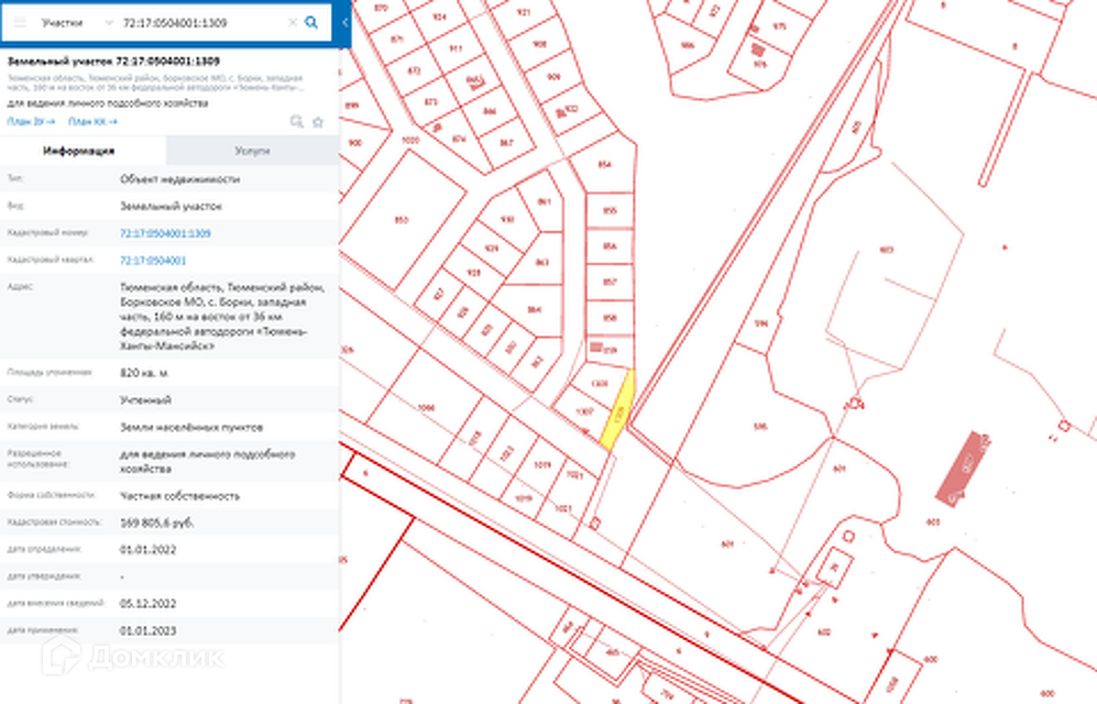 Продается земельный участок 8 соток по Тобольскому тракту в районе с. Борки . Категория: земли населенных пунктов. Разрешенное использование: для ведения личного подсобного хозяйства.