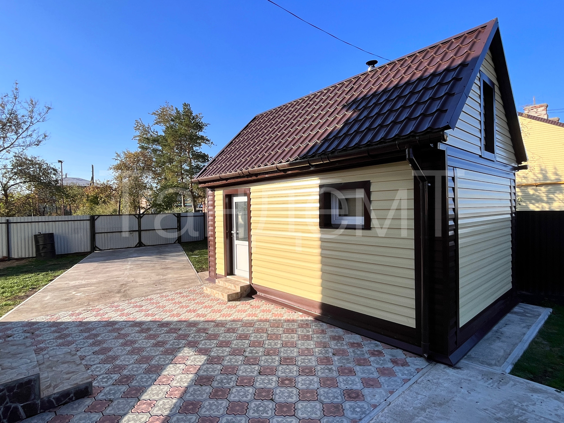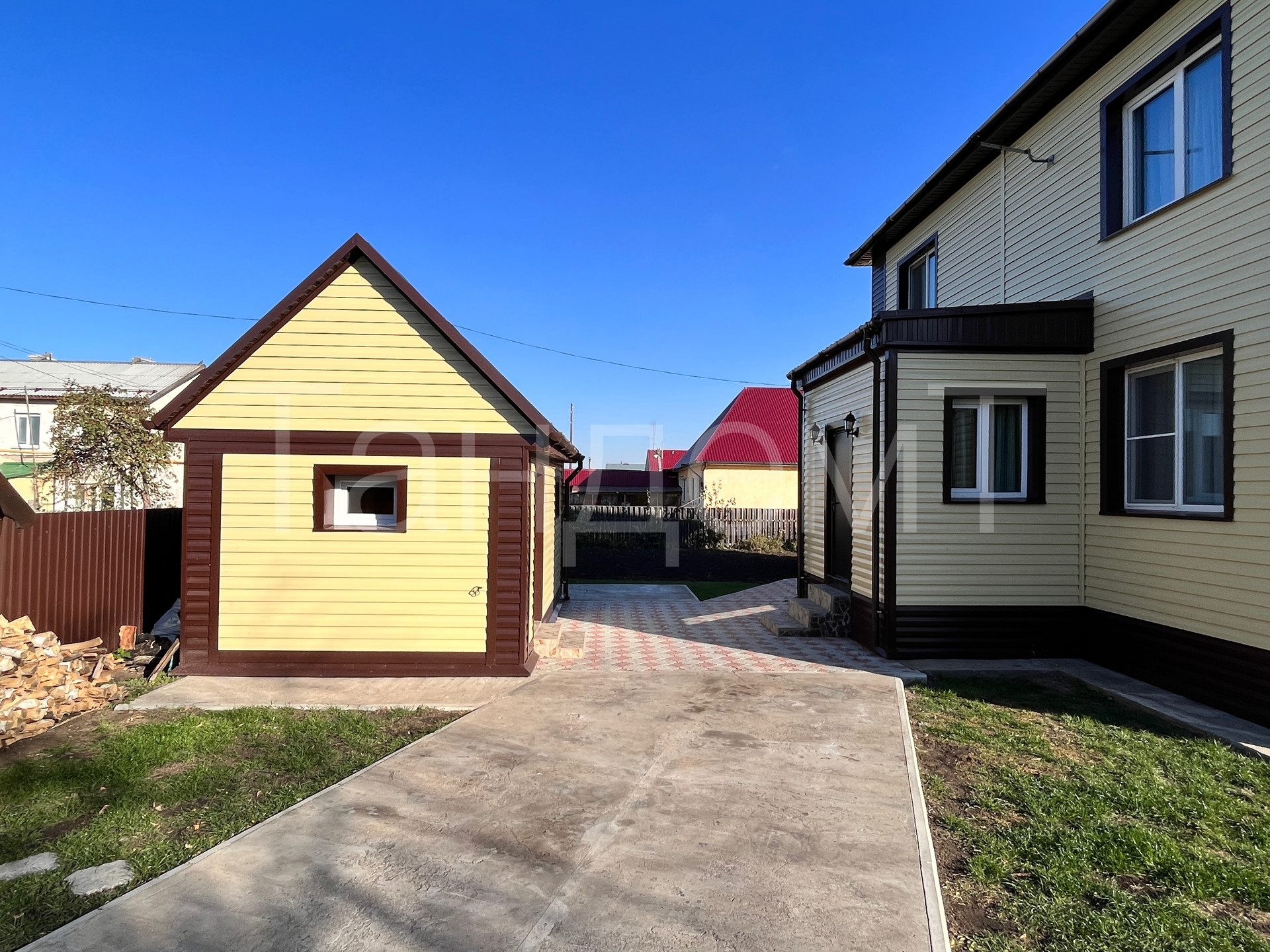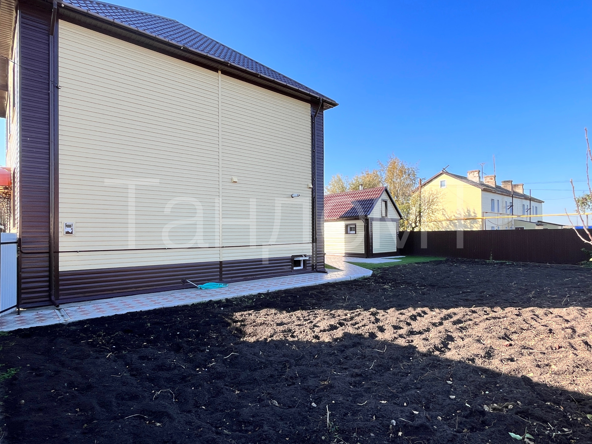 Прямо за домом новая, тёплая банька и площадка для стоянки авто гостей.