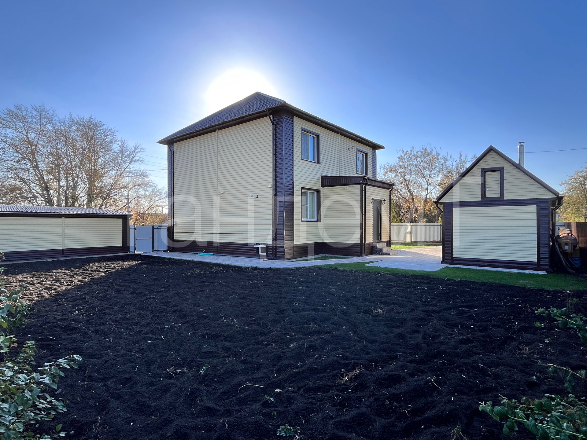 На территории гараж с автоматическими воротами на 2 авто.