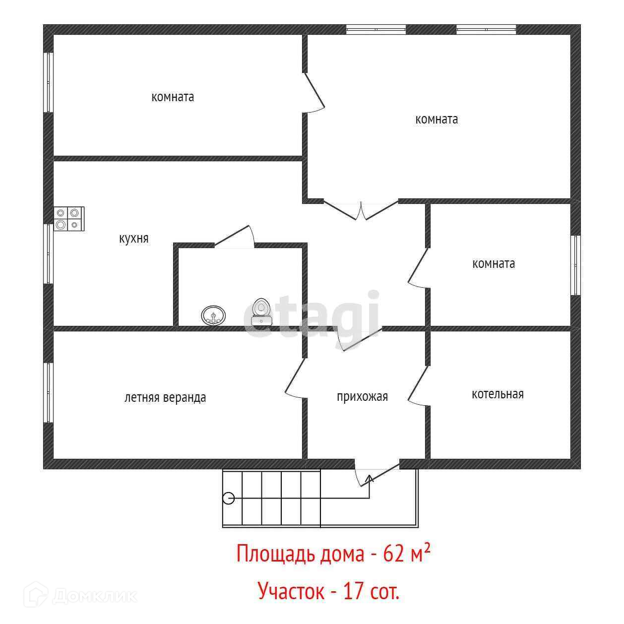 Дом одноэтажный 62 кв. м. на участке 17 соток.