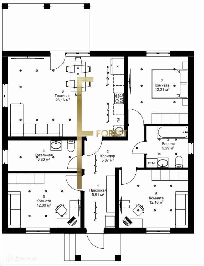 Общая площадь 122.1 м2