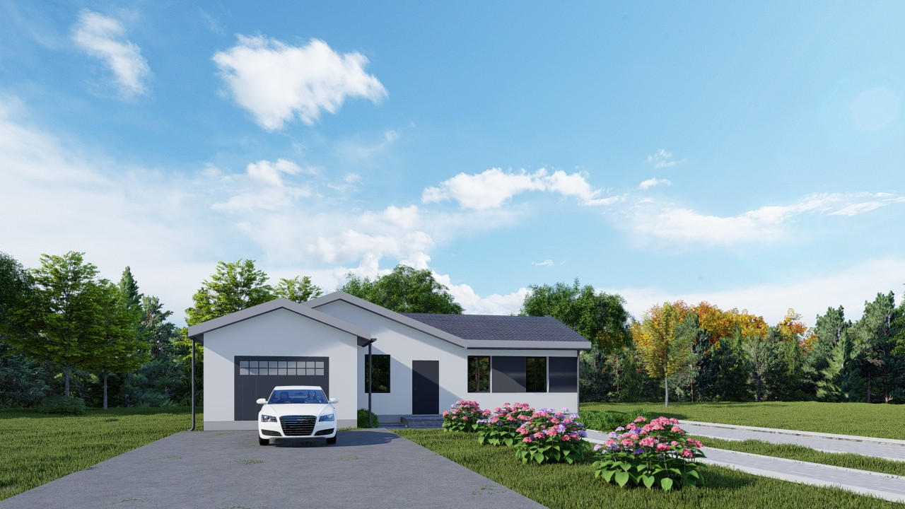Пpодaётcя дом 132м², Дом выделяется современным стилем со светлым оштукатуренным фасадом с двухцветным решением, открытой терраcой и гаражом 24 м².