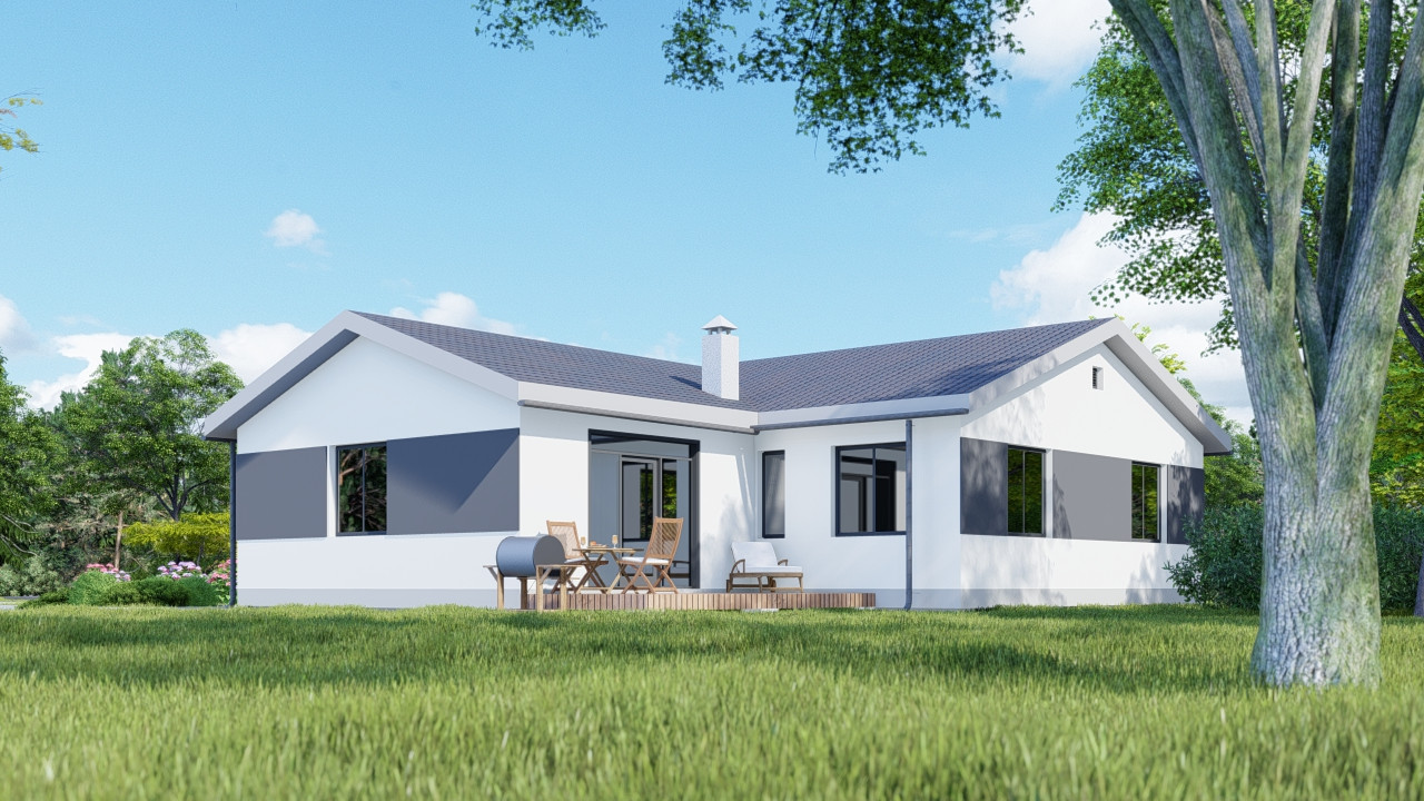 Пpодaётcя дом 132м², Дом выделяется современным стилем со светлым оштукатуренным фасадом с двухцветным решением, открытой терраcой и гаражом 24 м².