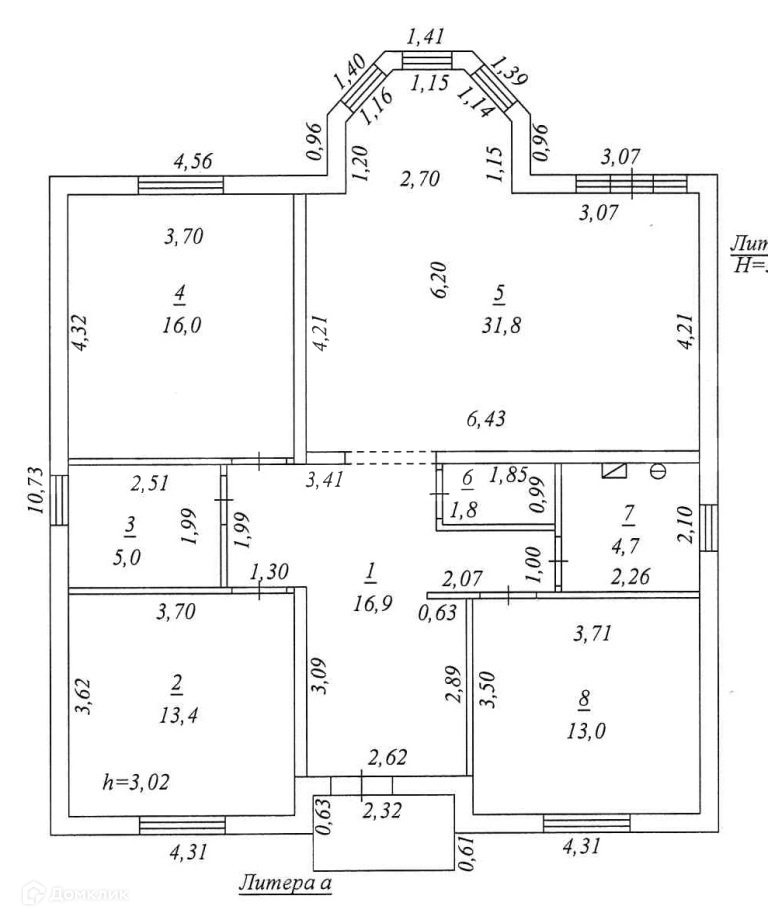 - Большая кухня-гостиная 32 м2 + 3 комнаты 13, 13 и 16 м2.