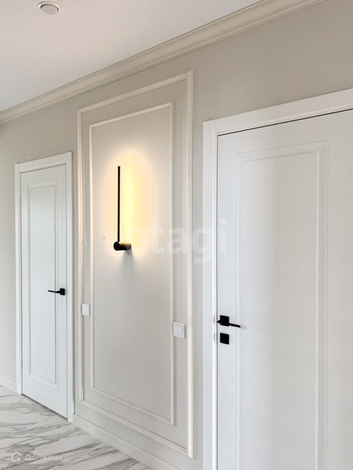 Ламинат Кронотекс 32 класса. Горячее водоснабжение и отопление от газового котла итальянской марки Ferroli. Дополнительно установлен итальянский электрокотел ProTherm. Также установлены дорогие и качественные межкомнатные двери фирмы Гардиант с итальянской фурнитурой фирмы Morelli. Немецкая сантехника фирм Wassercraft и Grohe, и итальянской ванной.