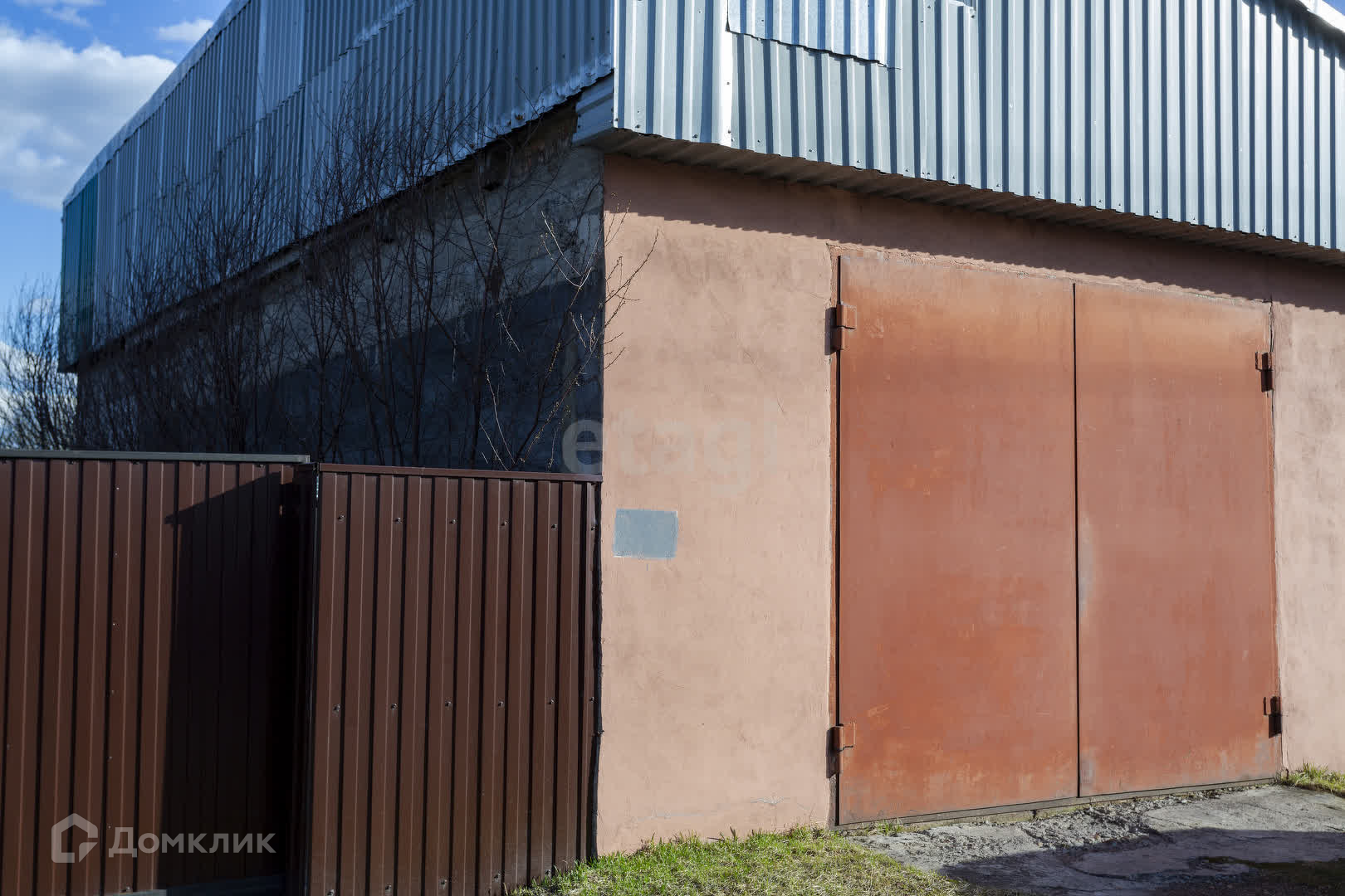 Забор, профлист. Есть распашные ворота, для заезда автомобиля.