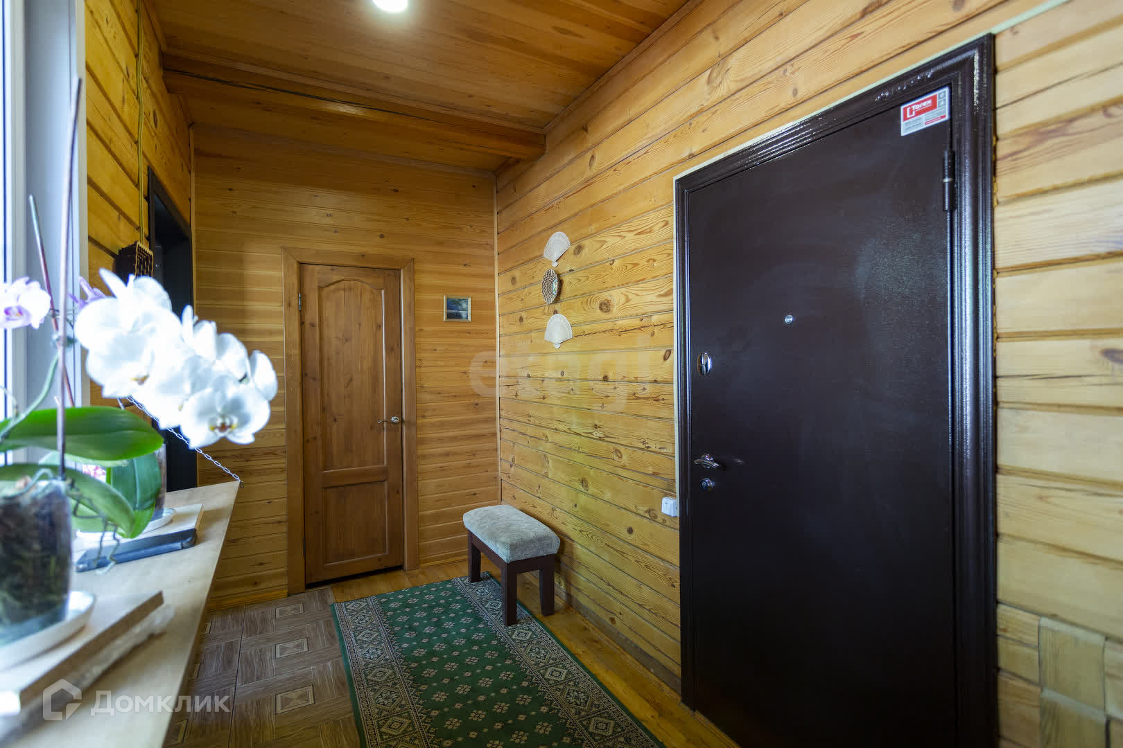 Потолок обшит евровагонкой, стены - обработанный брус. Все сделано очень качественно. Брус обшит металлосайдингом под бревно.