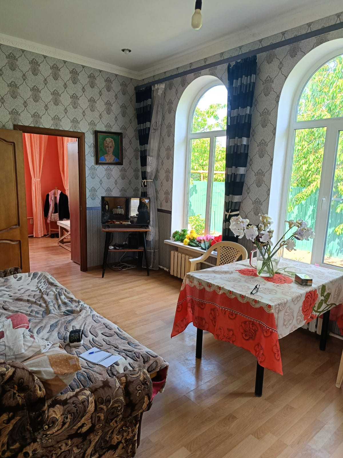 В доме кухня- гостиная и 2 светлые изолированные спальни