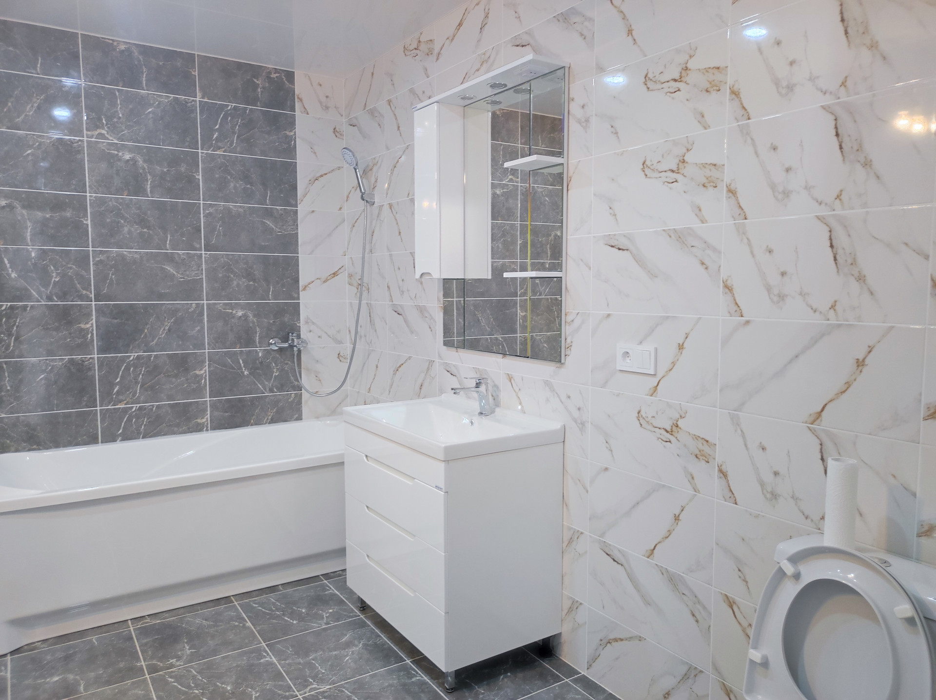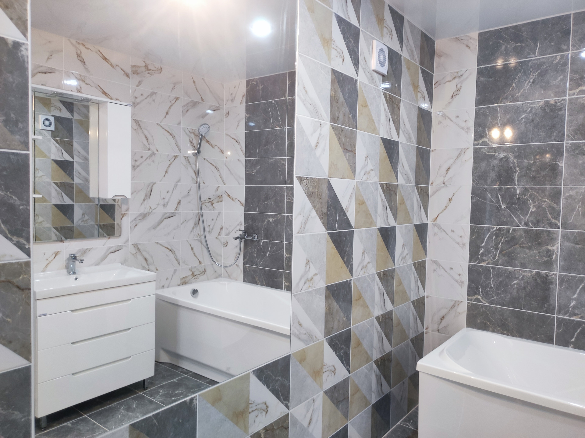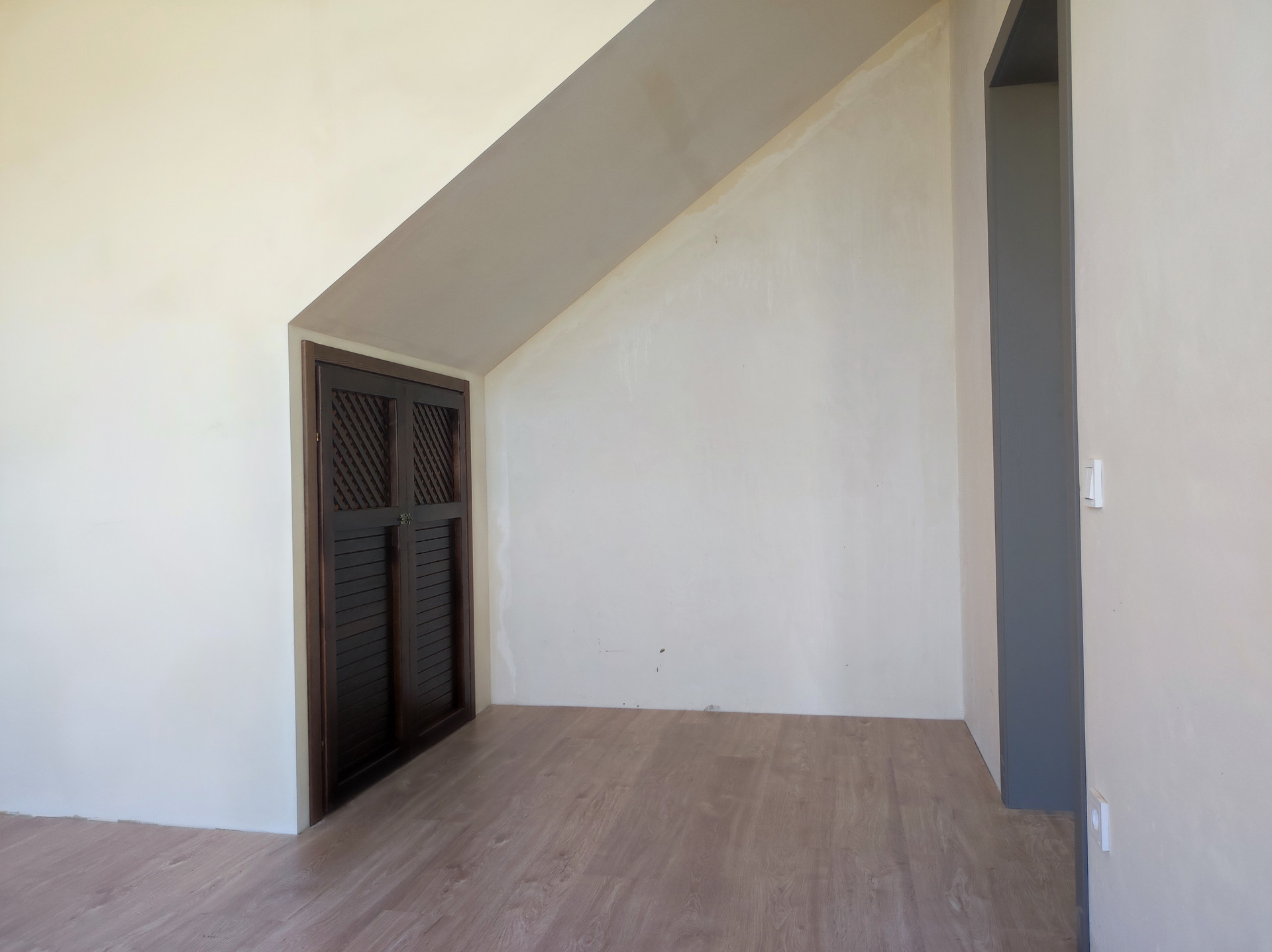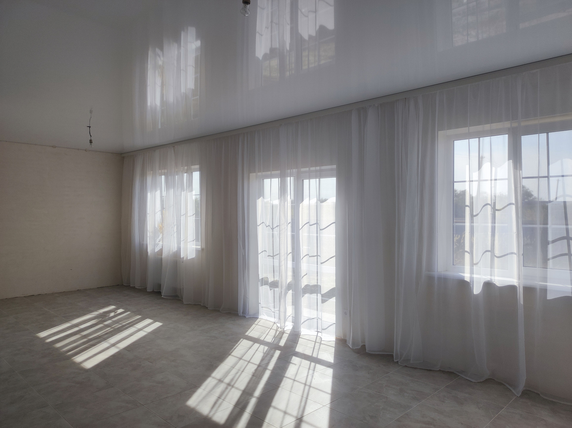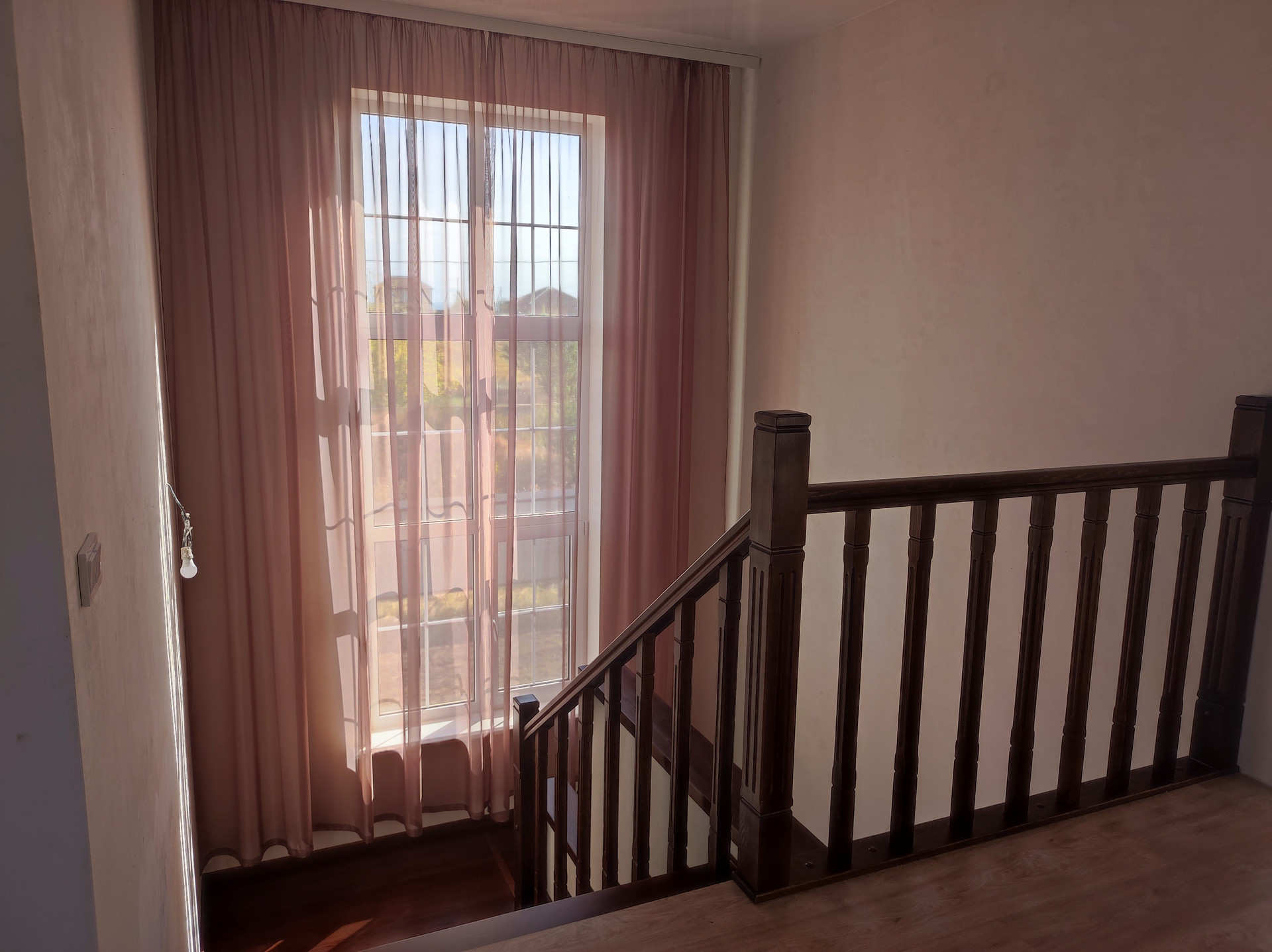 Сделан ремонт: полы керамогранит с подогревом на первом этаже, ламинат на втором, натяжные потолки, установлены сантехника и двери.