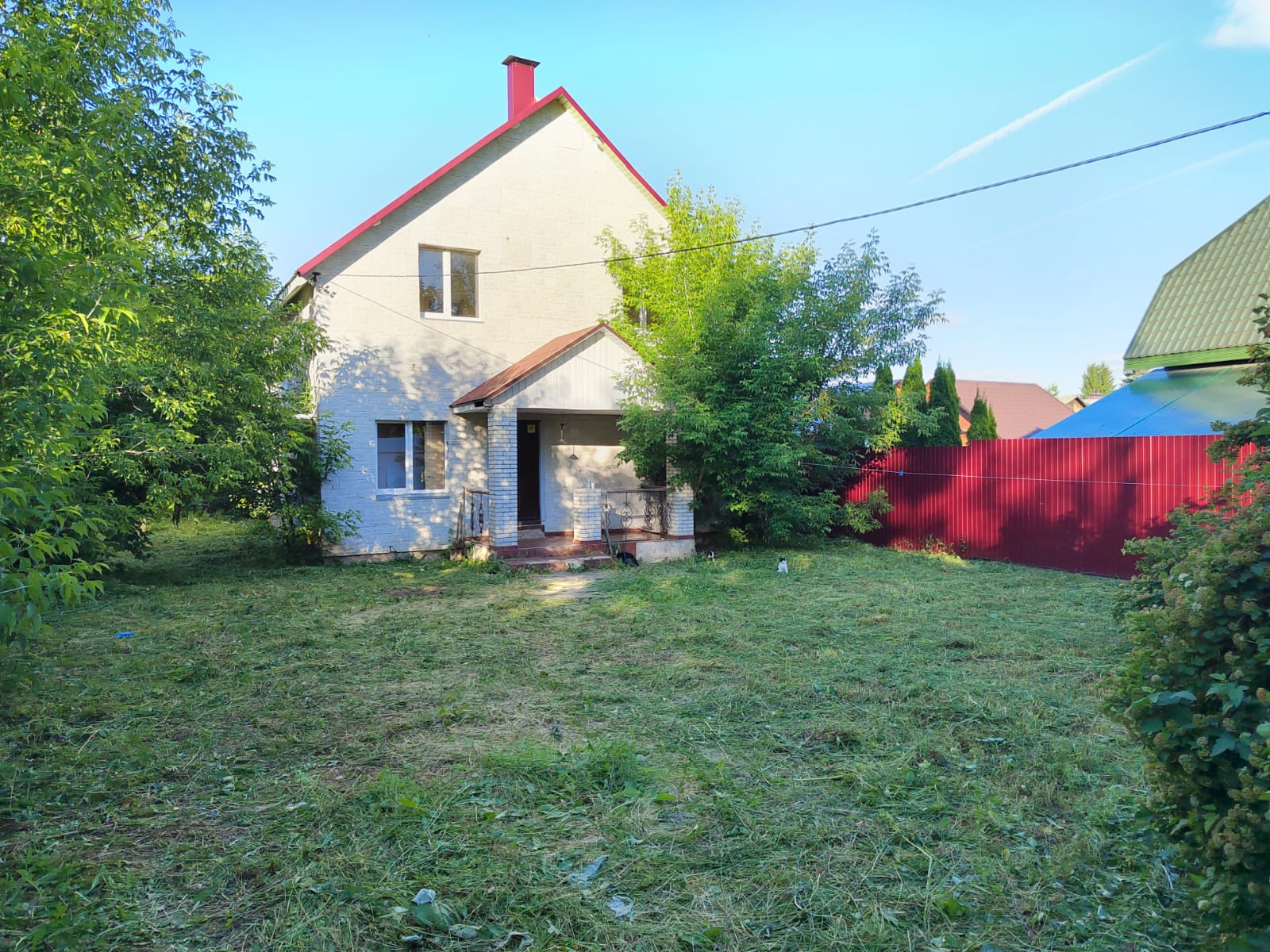 Благоустроенная территория, на участке посажены плодовые деревья и кустарники. По всему периметру участка сделан капитальный забор. Водопровод - колодец (9колец). Канализация – септик. Отопление - газовый котел (магистральный газ). Интернет - оптоволокно. Электричество три фазы 15 кВт.