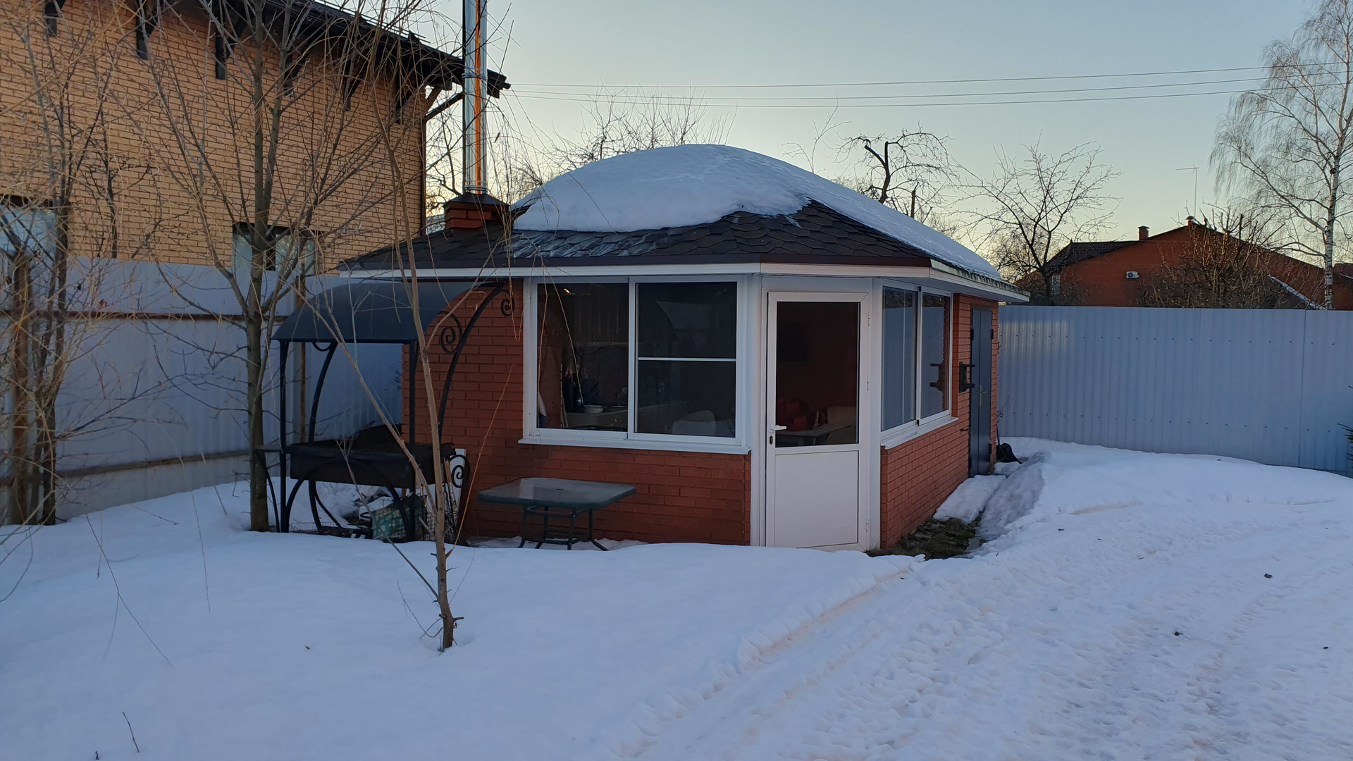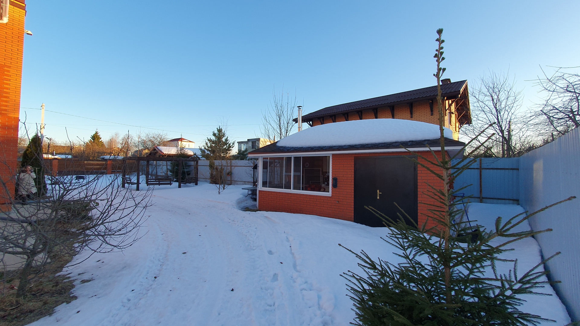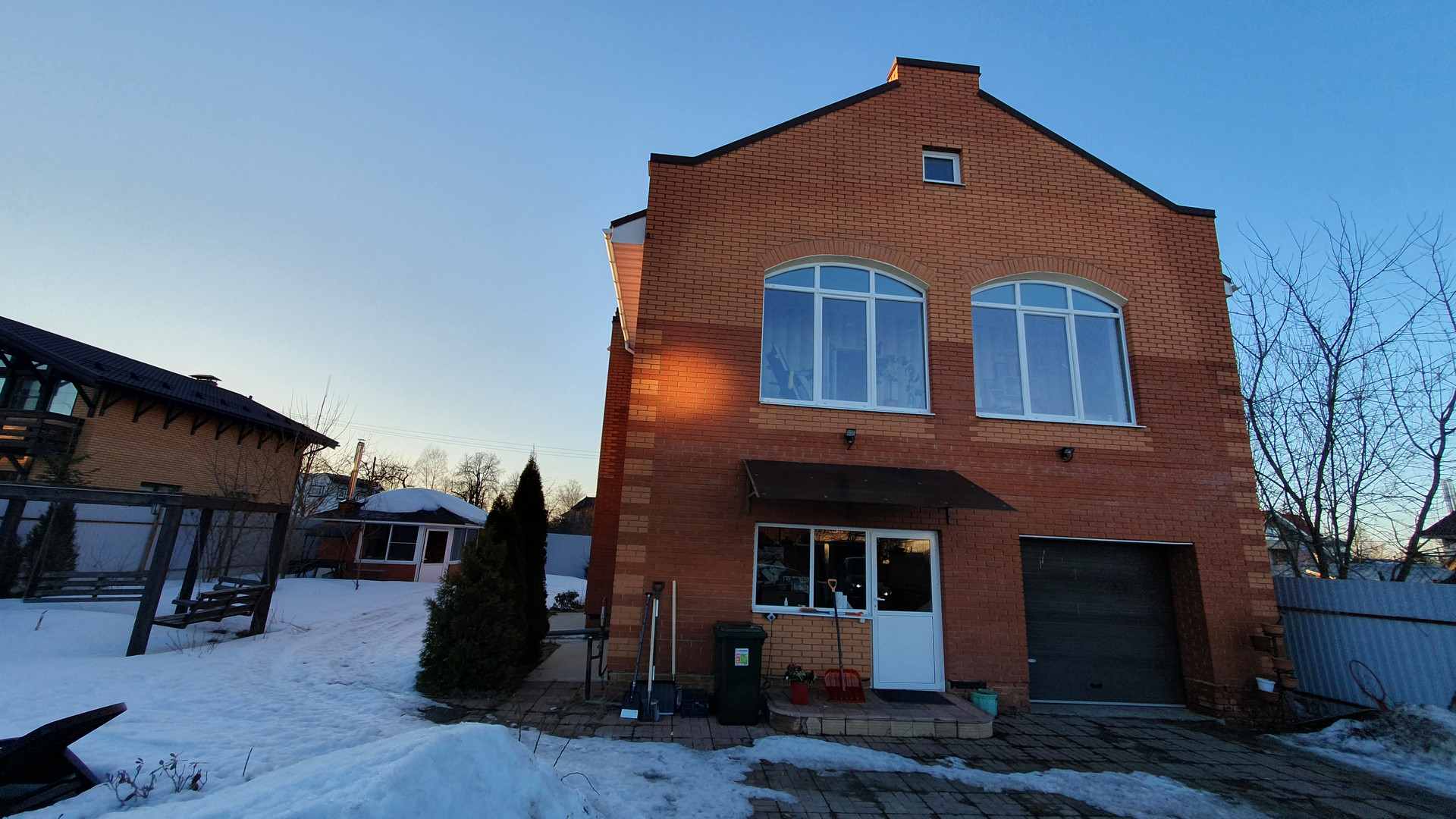 На участке расположена беседка, площадью 20 метров и зона отдыха с кострищем (уличный очаг). Видеонаблюдение, автоматические распашные ворота в цвет фасада дома, удобный заезд и парковка на 3 машины.