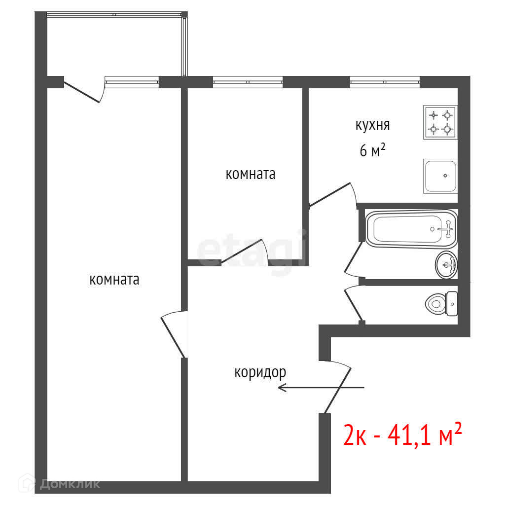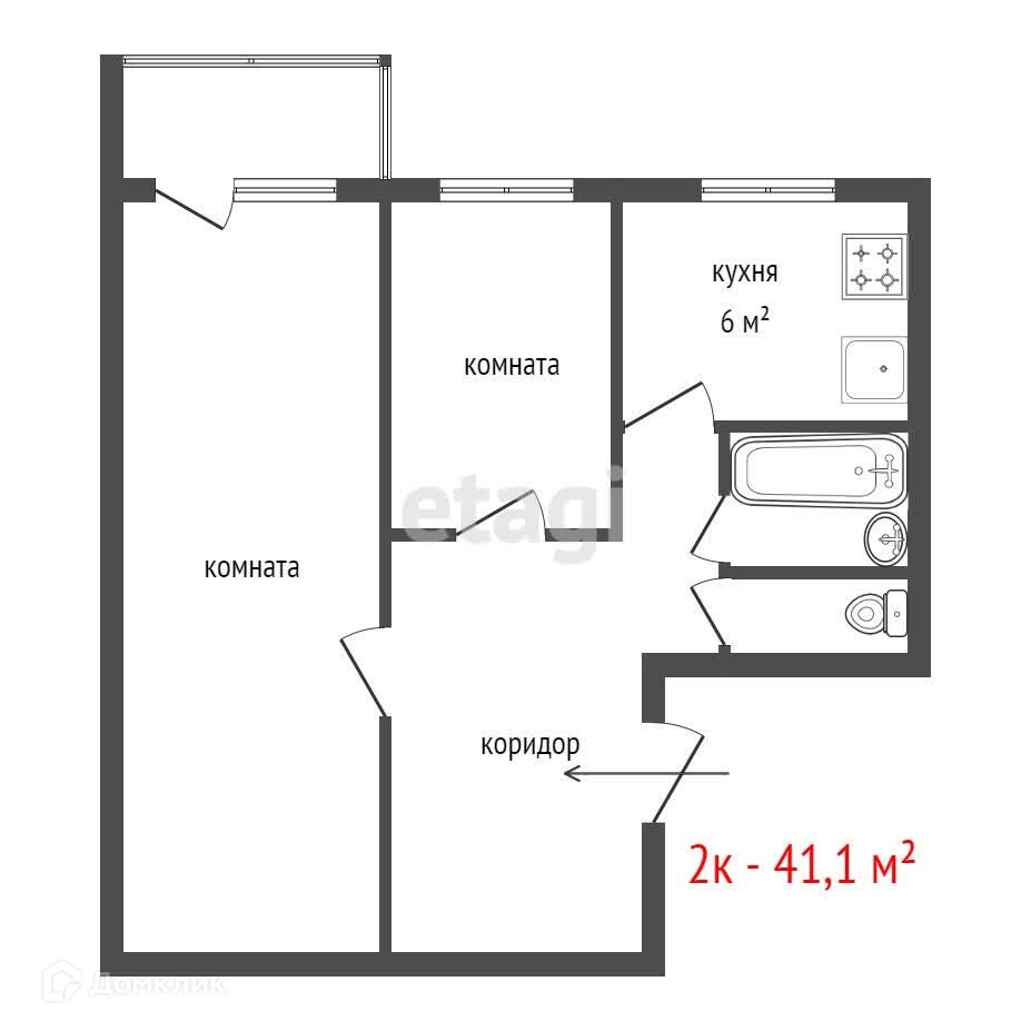 Общая площадь 41.1 м2