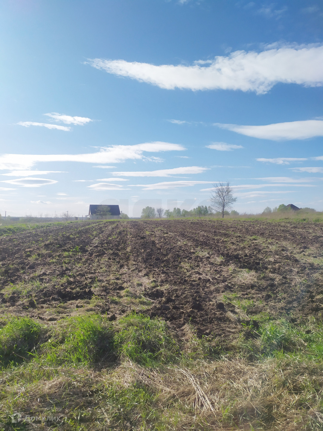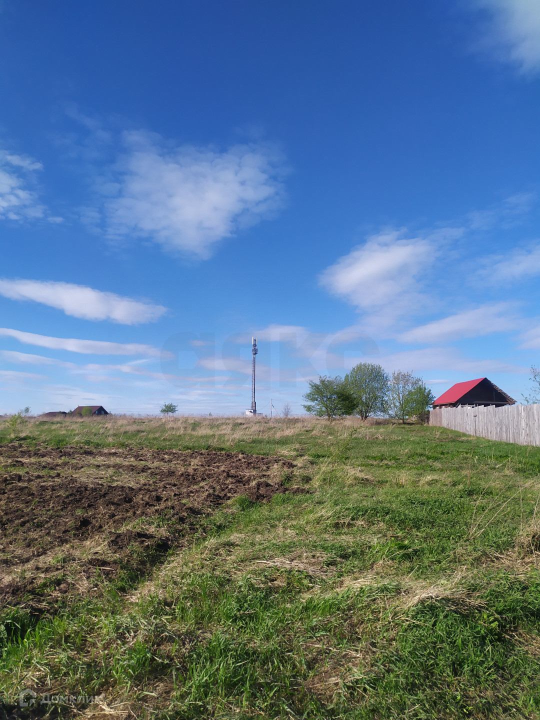Рядом с участком электрические столбы, газ - по границе участка. Напротив - водонапорная башня.