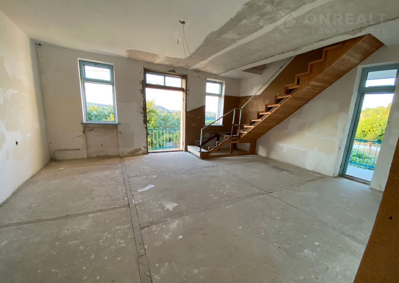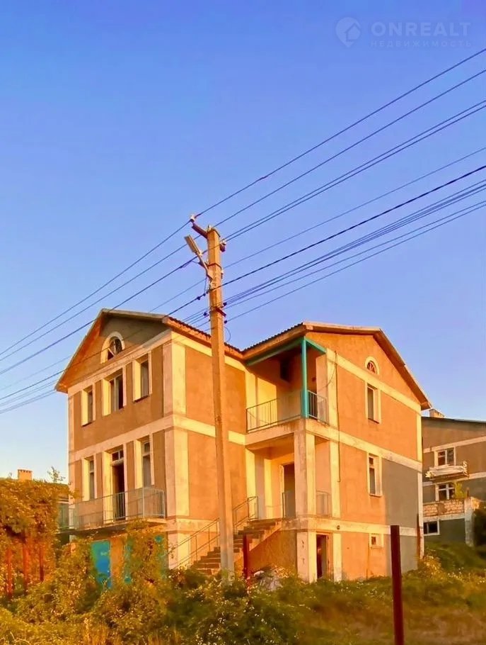 Дом 301 кв.м, 3 этажа,также есть внутренний гараж и смотровая яма находящаяся в техническом этаже здания, коммуникации (газ, свет, вода, канализация) по границе участка. Дом сделан из альминского камня.