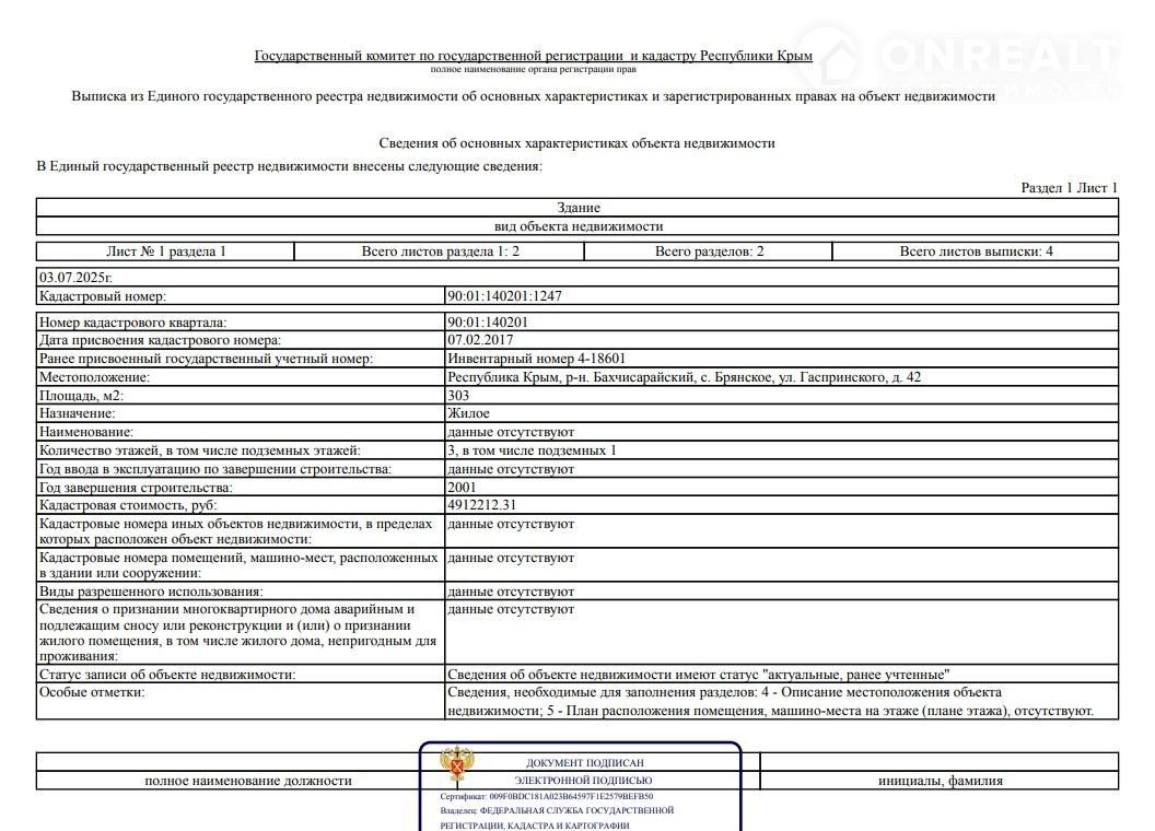 Кадастровый номер 90:01:140201:1247