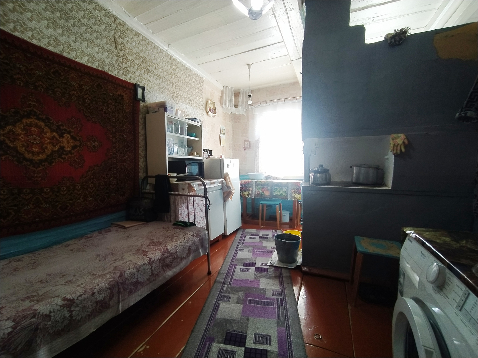 Бревенчатый, добротный, теплый дом. Косметическое состояние хорошее, комнаты очень светлые. Водоснабжение скважина. Имеется баня, хороший подпол, есть надворные постройки. Место ровное, большой участок, просторный двор, вымощен плиткой,  плодородная и ухоженная земля, нет проблем с подъездом. Отопление  печное - шикарная русская печь,  рядом с домом  проходит газ. Отличный вид на реку, живописное  место для отдыха от городской суеты, подходит  для постоянного проживания. Рядом школа, детский сад, остановка транспорта.  Дорога хорошая,  проблем с подъездом нет, до центра города Белорецк минут 20 на транспорте. Остается мебель и техника. Осмотр по согласованию