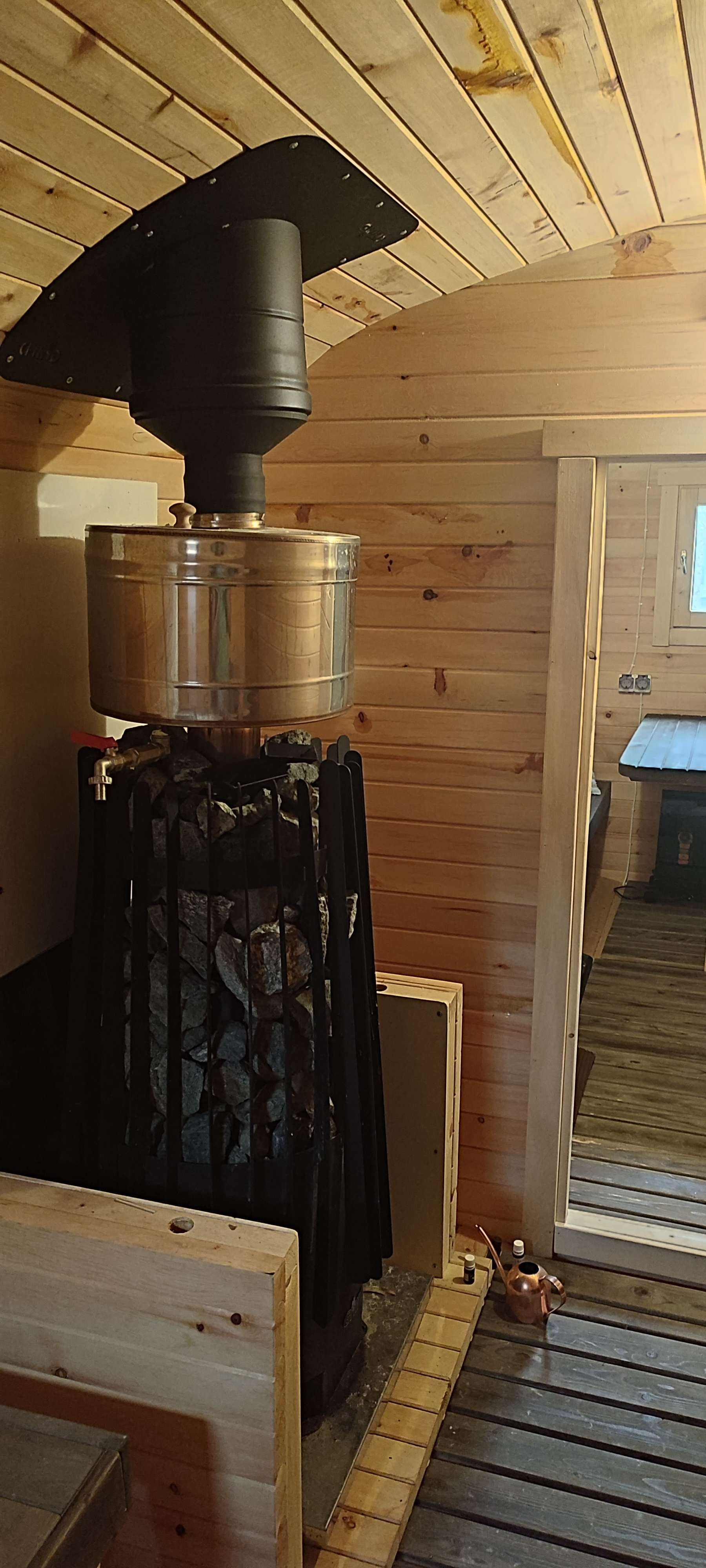 Дом в центре участка (6 соток), огороженный забором. На территории баня бочка из кедра, изготовленная под заказ, хоз. сарай с садовым летним и зимним инвентарём и под хранение вещей, мангальная зона состоит из мангала с крышей и трубой, с печкой и казаном, коптильней и просто мангал с шампурами и решётками.