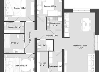 Общая площадь: 122.9 м2