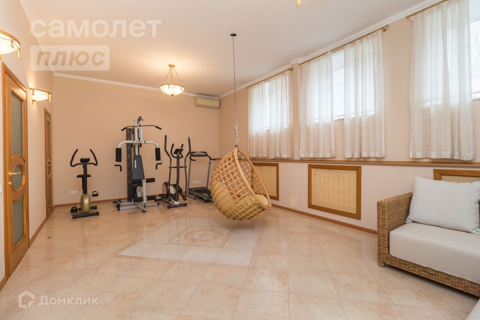 Планировка максимально функциональная. Просторные спальни, кухня-столовая с выходом на террасу, каминный зал, кабинет, санузел. На цокольном этаже сауна, душевая, прачечная, бойлерная, спортзал с комнатой отдыха. В мансардной части дома для любителей погонять шары, есть бильярдная.