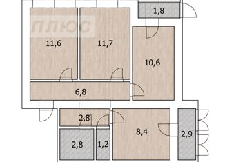 Продаю 3-ком. квартиру, 71.7 м2, улица Цюрупы, 166
