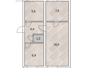 Общая площадь: 44.1 м2