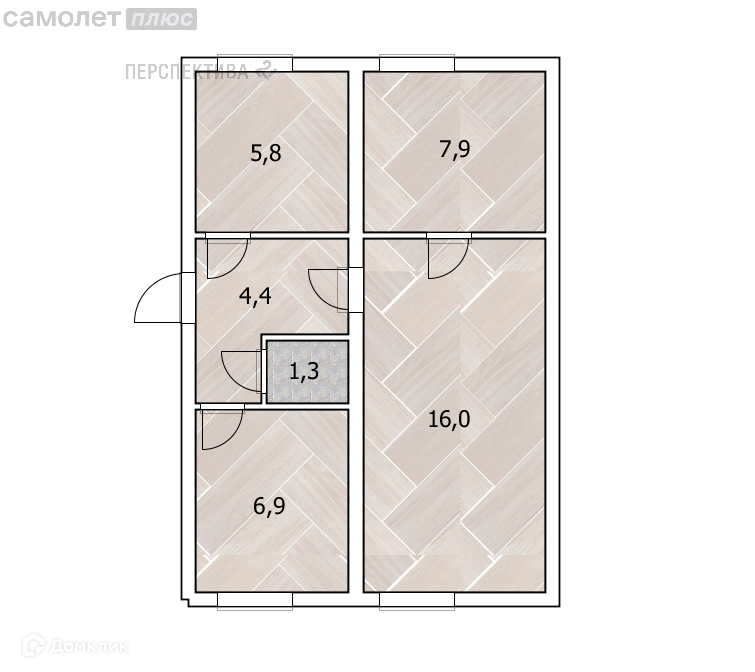 Жилая площадь 29.3 м2