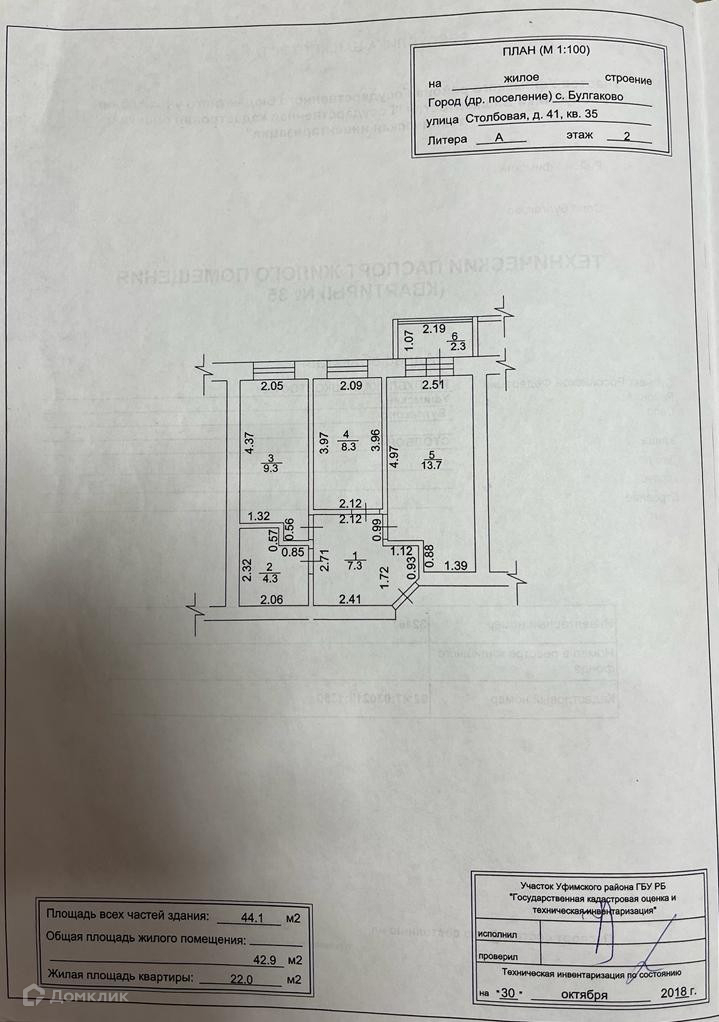 Общая площадь 44.1 м2