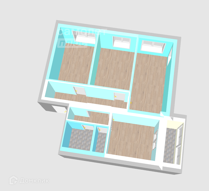 Параметры: 3-х комнатная квартира, общая площадь 58,0 кв.м., + балкон 3 кв.м.,
