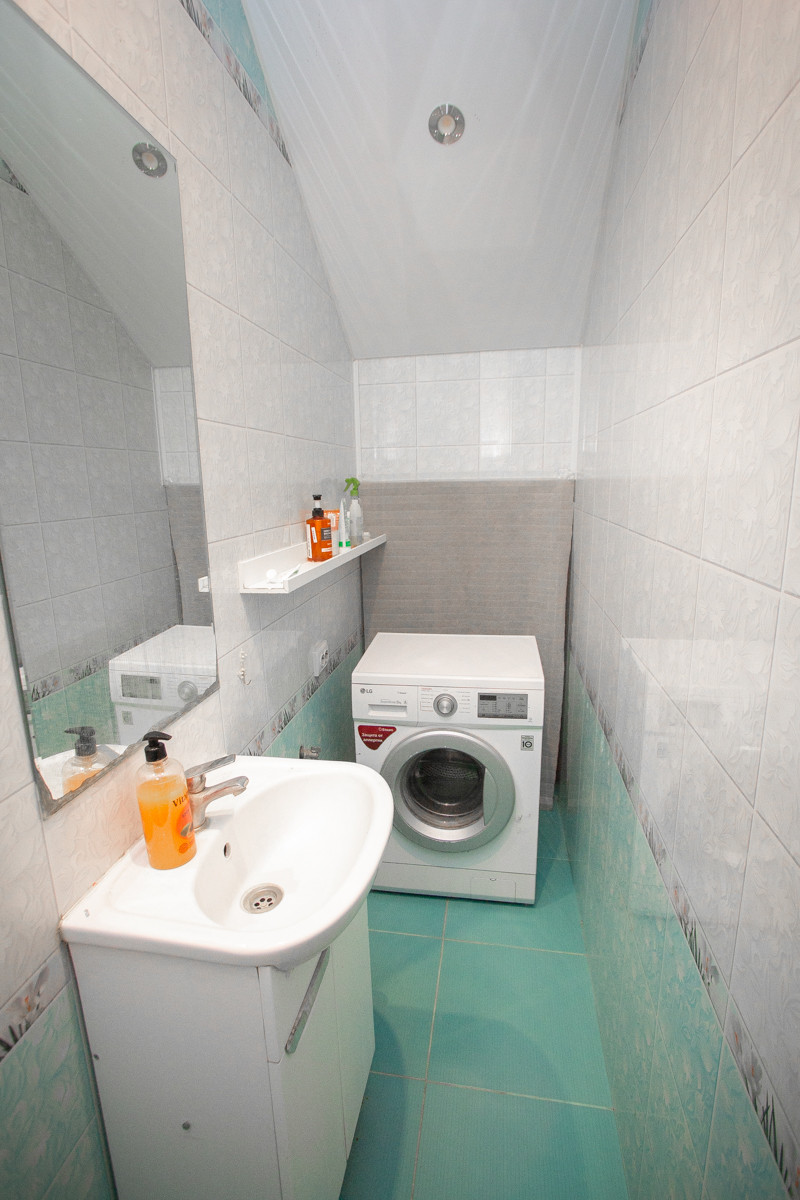 Два санузла – удобно когда на каждом этаже есть свой. Полноценная ванная комната на втором этаже для проживающей семьи. На первом этаже гостевой санузел, где удобно размещена стиральная машина (есть место под сушилку)