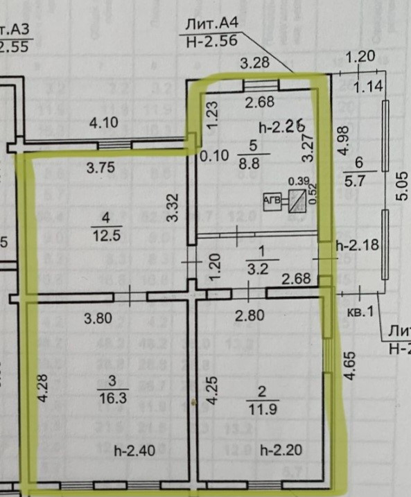 Общая площадь 52.7 м2
