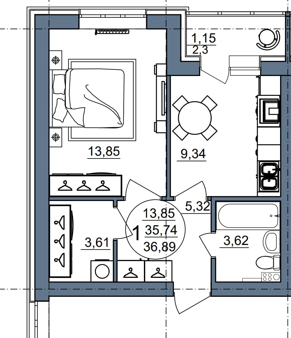 Общая площадь 37 м2