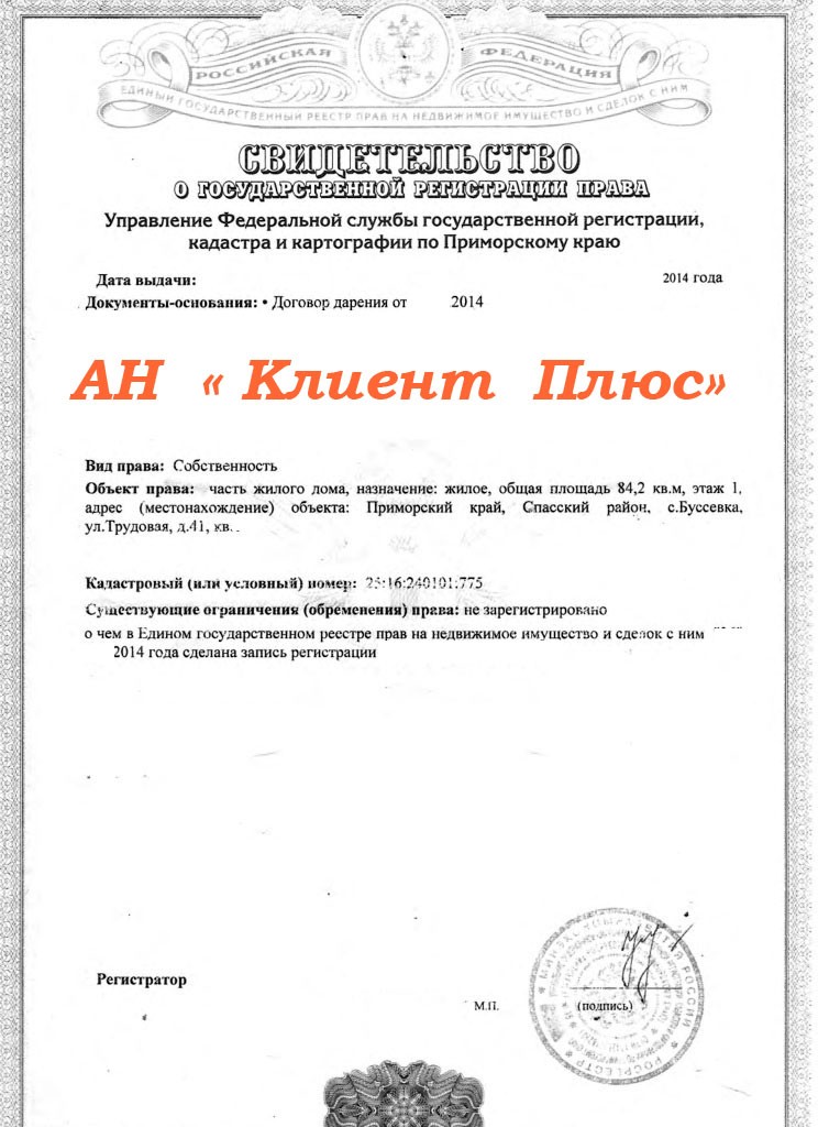 3.    По данным Росреестра по Приморскому краю – арестов и обременений не имеется.