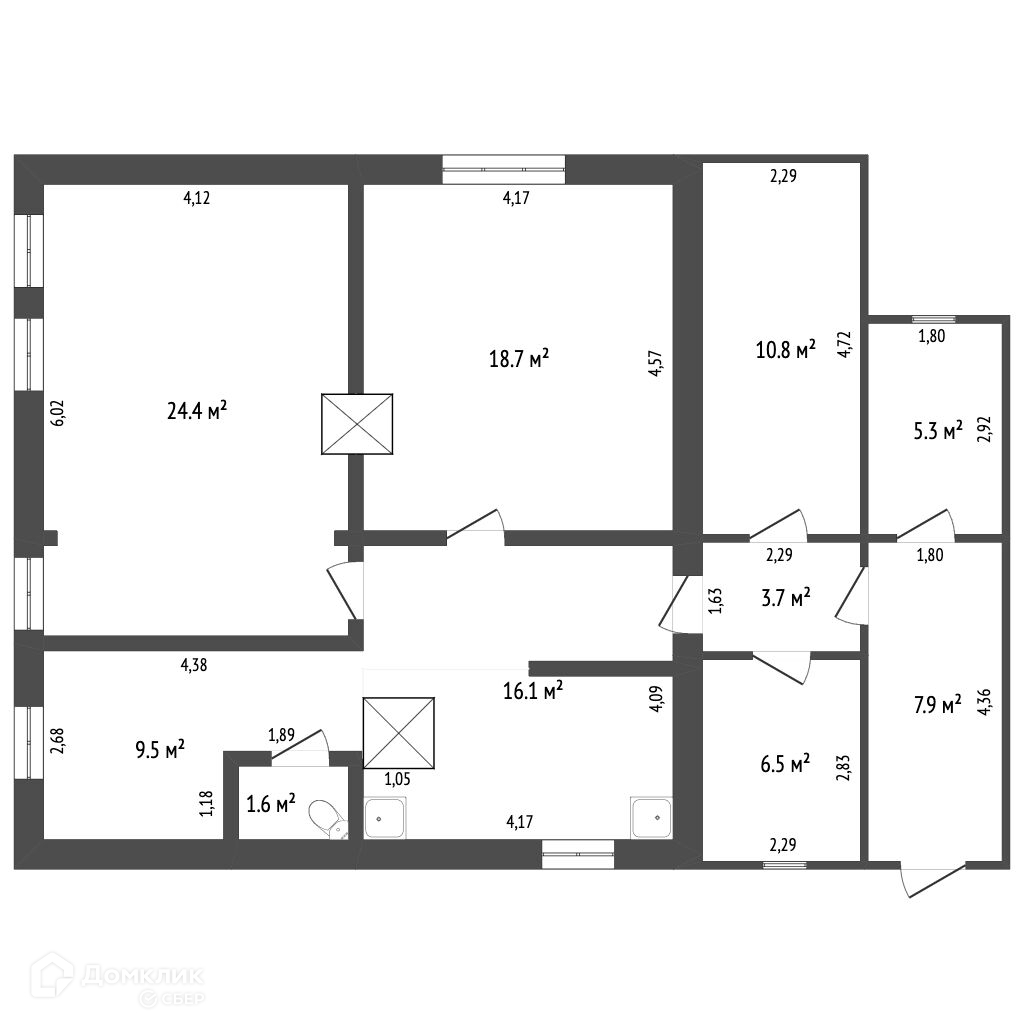 Общая площадь 70.3 м2