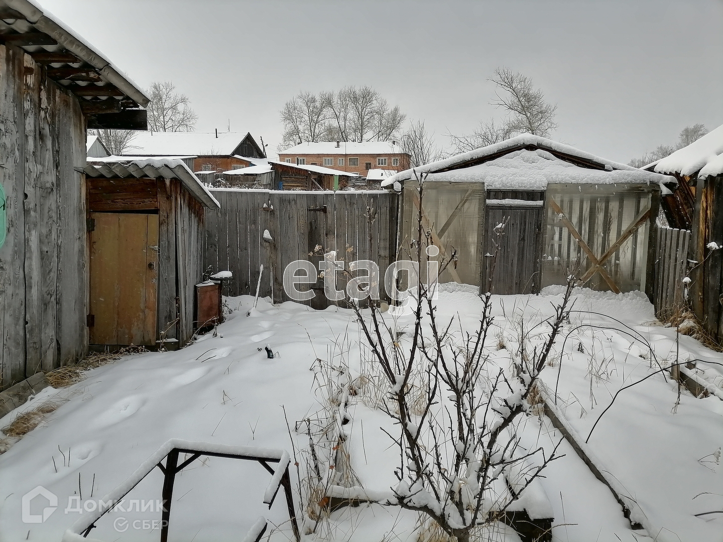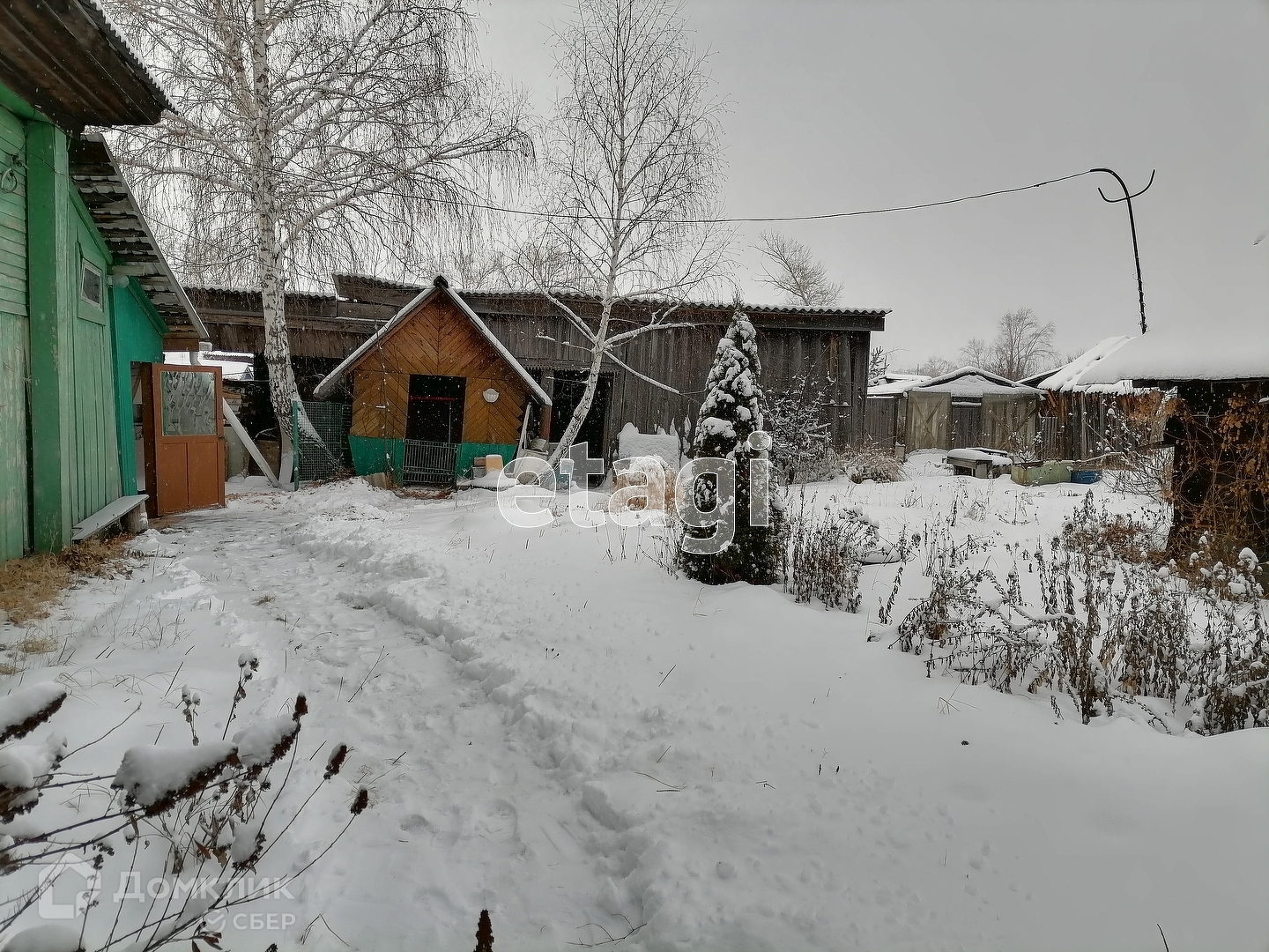 Дом на участке двадцать соток, есть баня, теплица, ягодные кусты, яблони, пихта во дворе, хозяйственные постройки, гараж.