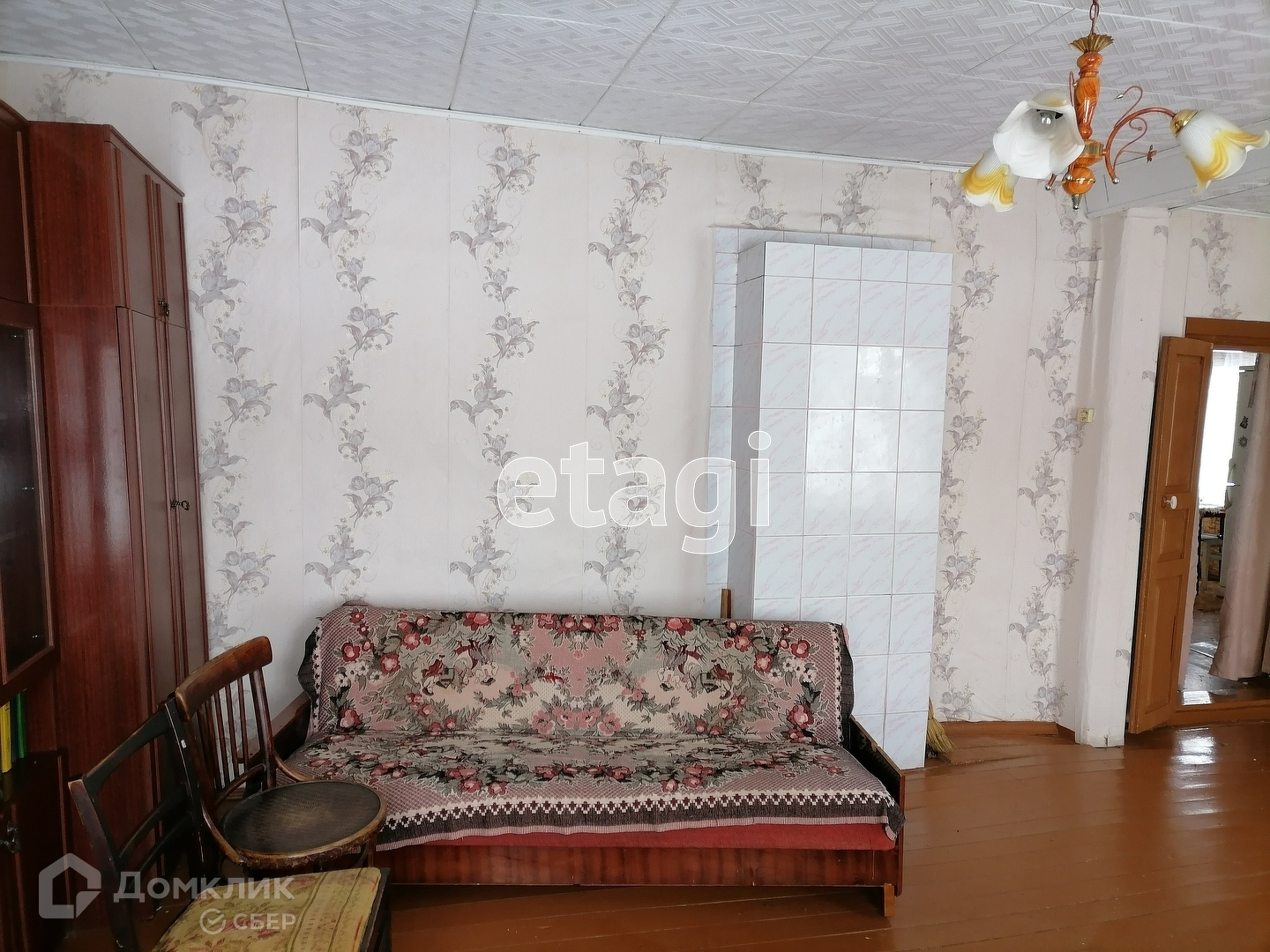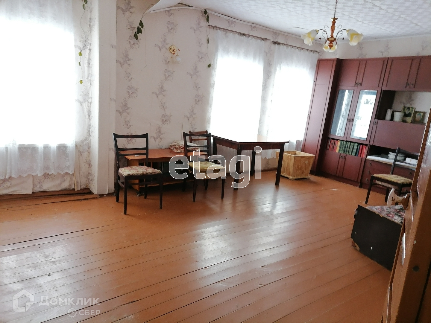 В доме три комнаты и кухня, туалетная комната. Пластиковые окна во всех комнатах. Вода заведена в дом, водоотведение, печное отопление. Из мебели остается стенка в зале.