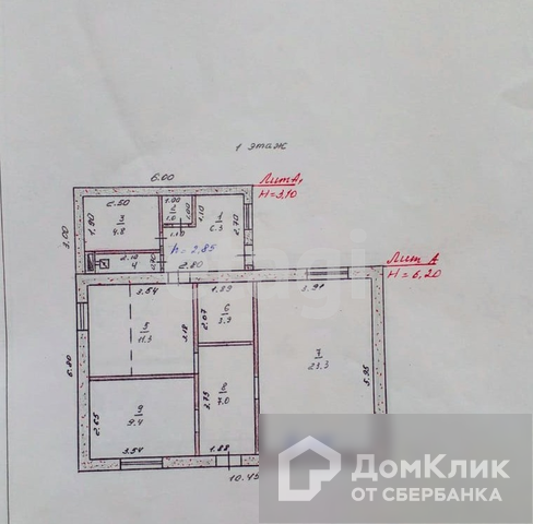 Есть цокольный этаж, с отдельным входом с улицы. Все этажи перекрыты плитами ж/б.