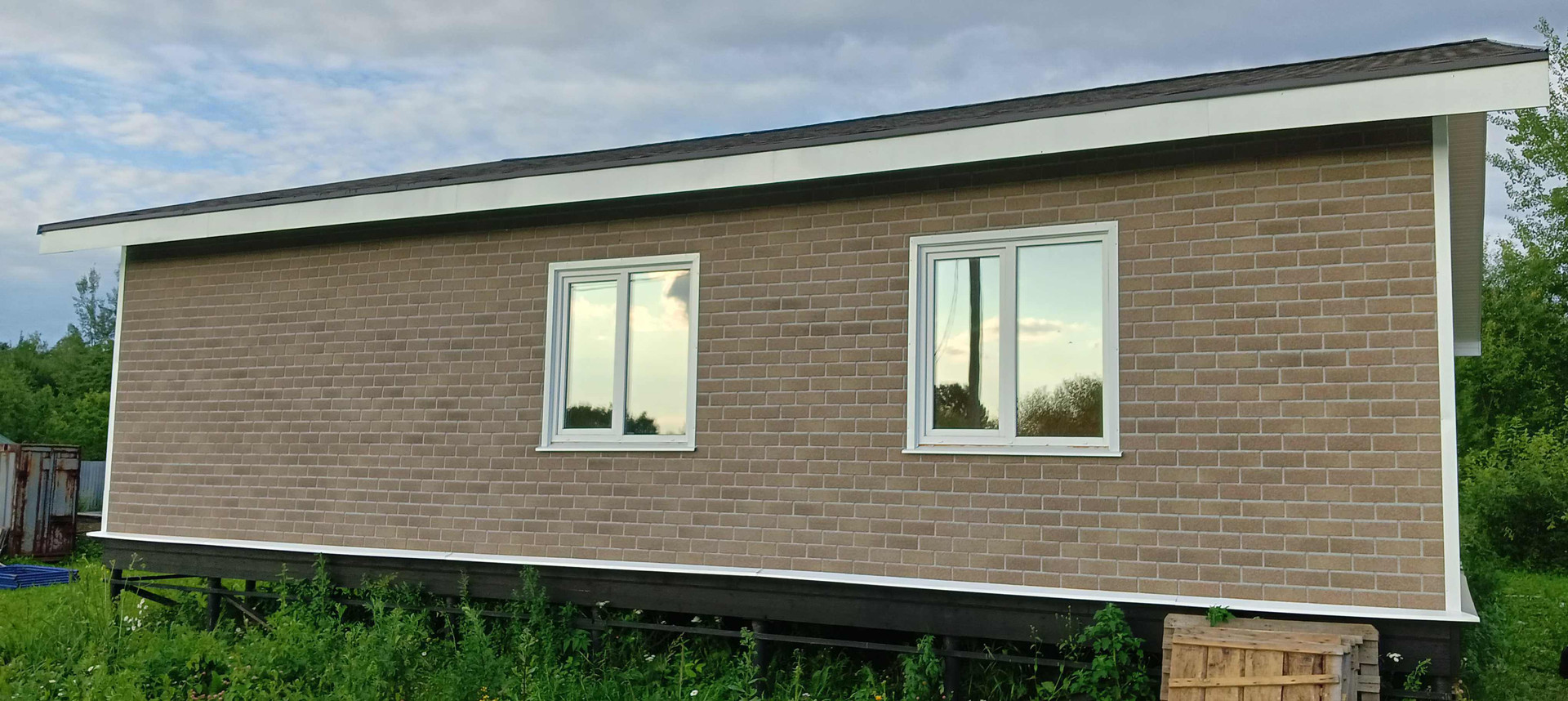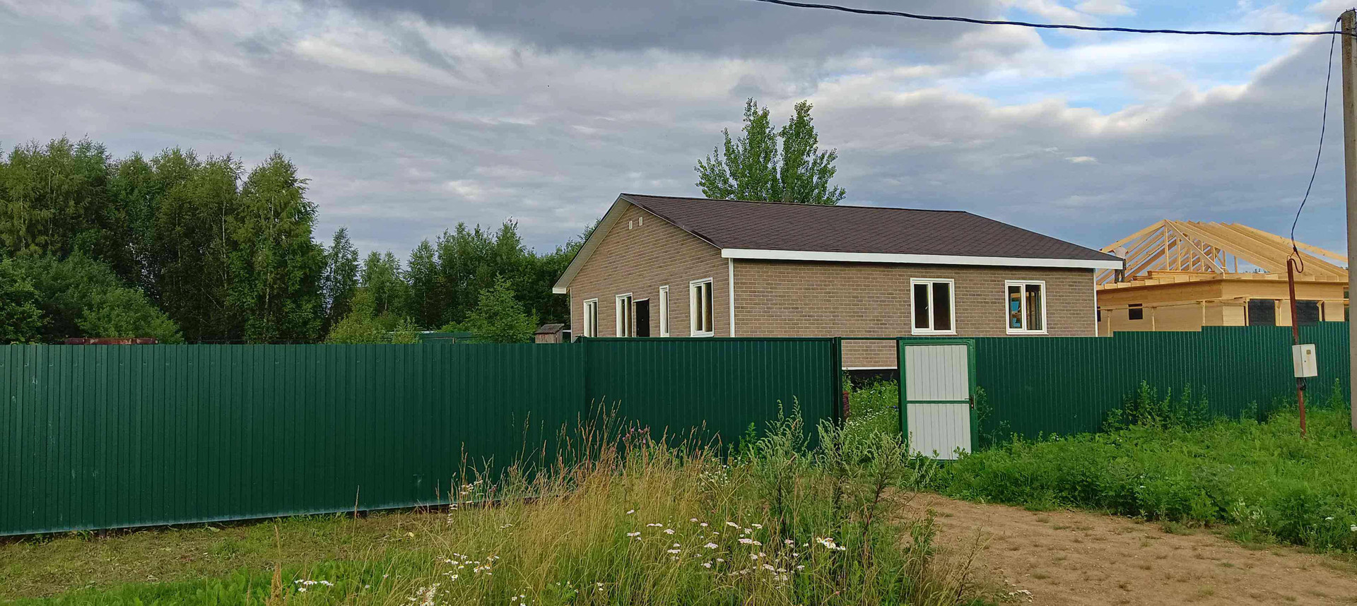 новый дом постройки 2022 года, без внутренней отделки,газ по границе участка, скважина,свет 15 кВт,7 минут до ЖД станции.